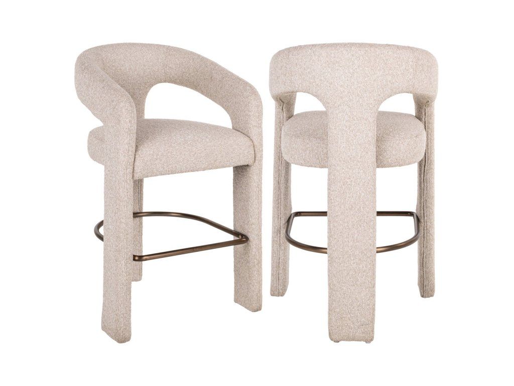 Táto barová stolička má štíhly, vzpriamený tvar s pokojným a vyváženým vzhľadom. Sedadlo a operadlo sú kompaktné s jemne zaoblenými líniami, ktoré vytvárajú pohodlný a decentný vzhľad. Čalúnenie má jemný, svetlý farebný dojem s matnou textúrou. Jej rafinovaný dizajn sa hodí k umiestneniu na kuchynský ostrovček alebo vysoký stôl v pokojnom interiéri.Dodatočné parametre