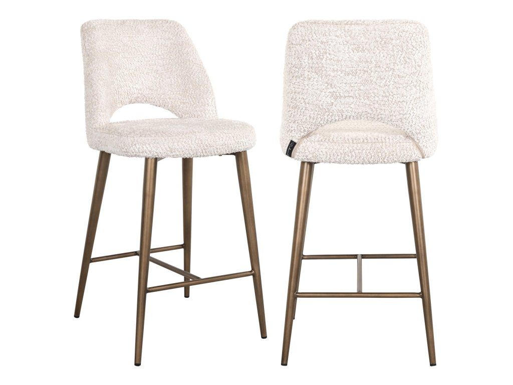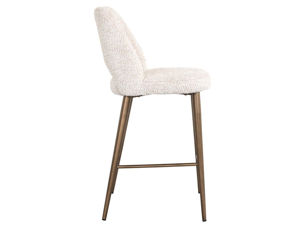 Barová stolička Delphine v krásnej krémovej farbe je elegantným a moderným doplnkom každého kuchynského ostrovčeka alebo vysokého stola. Mäkké krémové čalúnenie ponúka luxusné a pohodlné sedenie, zatiaľ čo jemná textúra dodáva stoličke moderný vzhľad. Zlaté kovové nohy dodávajú nádych elegancie a poskytujú stabilitu s integrovanou opierkou na nohy pre väčšie pohodlie. Delphine bez námahy kombinuje štýl a funkčnosť, vďaka čomu je ideálnou voľbou pre tých, ktorí hľadajú štýlové a zároveň pohodlné riešenie sedenia do moderného interiéru.Dodatočné parametre