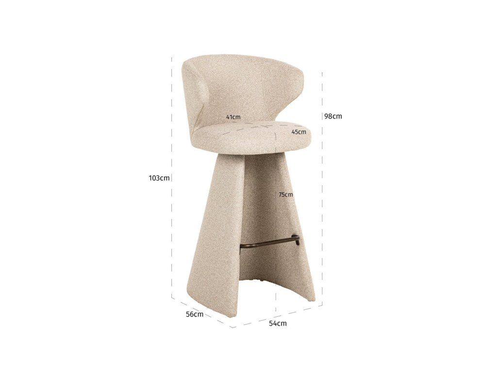 Barová stolička Gatsbi z úžasnej látky biscotti vyžaruje eleganciu a teplo. Elegantný dizajn a mäkké čalúnenie robia z tejto barovej stoličky nielen pohodlnú, ale aj štýlový doplnok do každej kuchyne alebo baru. Robustná konštrukcia zaisťuje odolnosť a dlhotrvajúci pôžitok zo sedenia.Dodatočné parametre