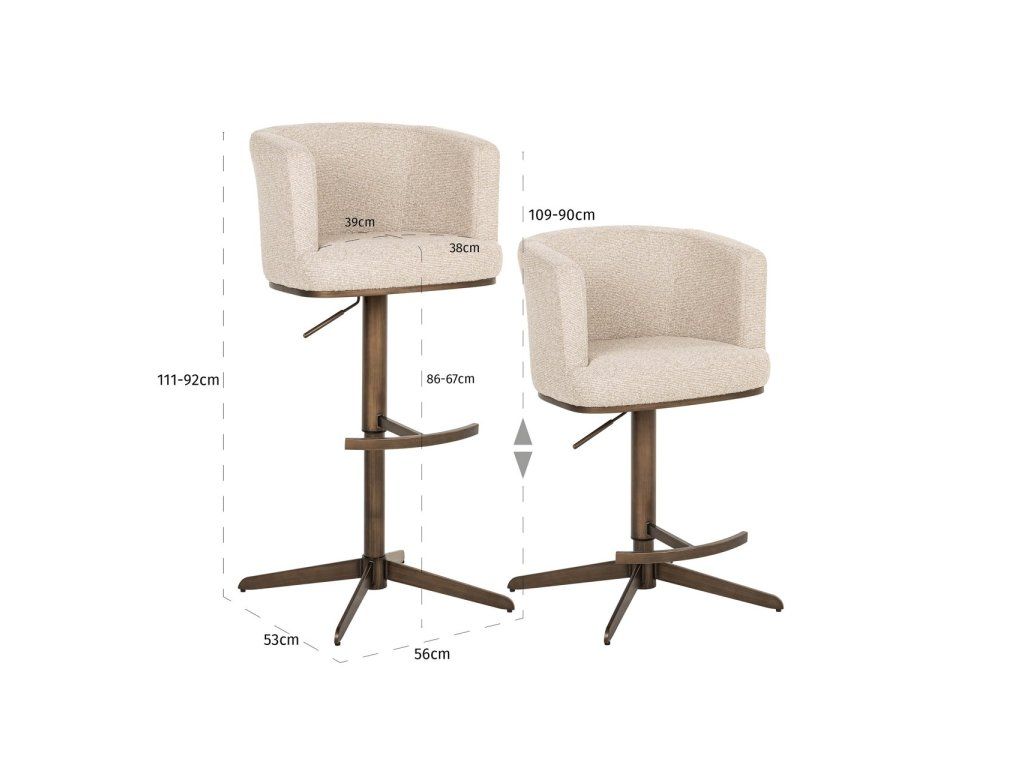 Barová stolička Cheyenne je dostupná v látkach biscotti a béžová graffic, ktoré kombinujú štýl a všestrannosť. Moderný dizajn v kombinácii s mäkkým čalúnením robí z tejto barovej stoličky ideálnu stoličku do moderného aj klasického interiéru. Robustná konštrukcia poskytuje stabilitu a dlhotrvajúce pohodlie.Dodatočné parametre