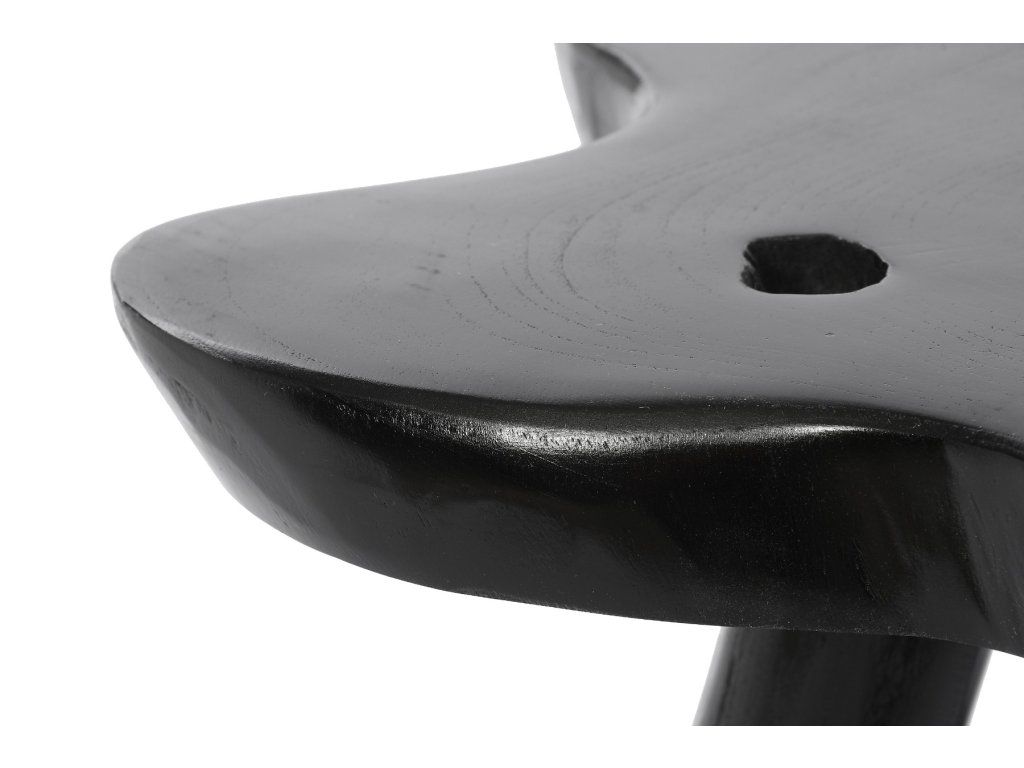 Stôl je väčší z dvoch príručných stolíkov a ako súprava vyzerajú nádherne. Je vyrobený z teakového dreva, ktoré je odolné a odolné voči vlhkosti. Jeho doska, navrhnutá do jednoduchých, eklektických a prírodných interiérov, evokuje kmeň stromu a jej nepravidelné tvary pútajú pozornosť. Ak chcete, aby vaša obývačka pôsobila ako miesto, kde bol starostlivo premyslený každý detail, tento stôl bude pre vás ideálny. Jeho klasická čierna povrchová úprava ponúka množstvo dekoratívnych možností.Dodatočné parametre