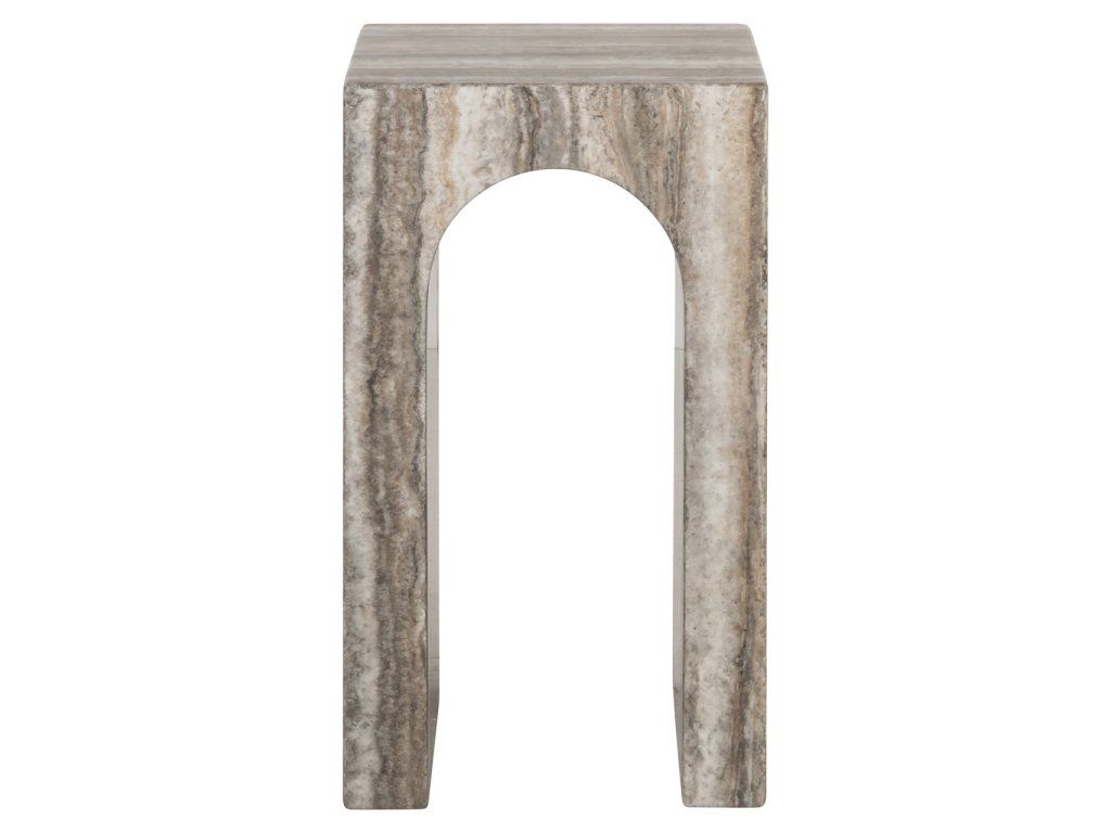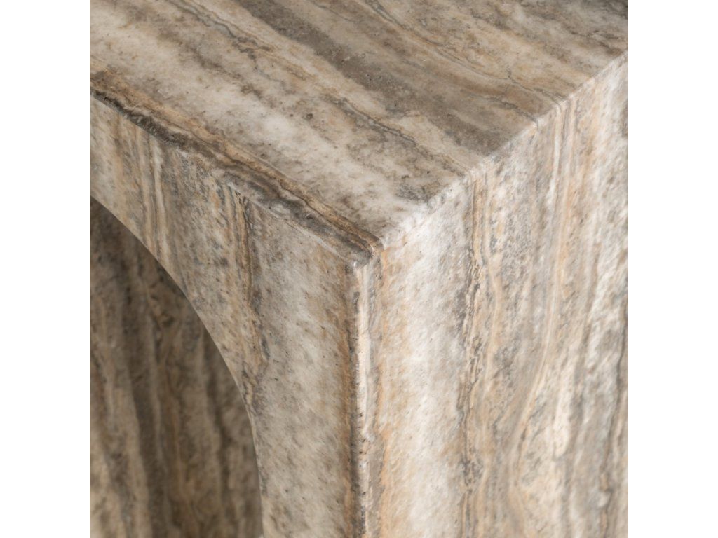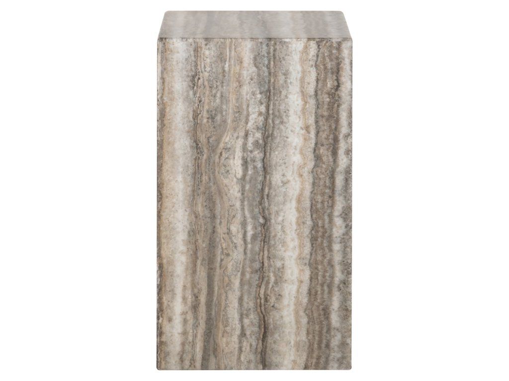 Končný stolík Dulce má sochársky tvar stĺpa s povrchovou úpravou z imitácie travertínu v sivom prevedení. Kompaktný akcentový kus s nadčasovým charakterom.Dodatočné parametre