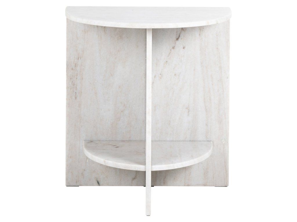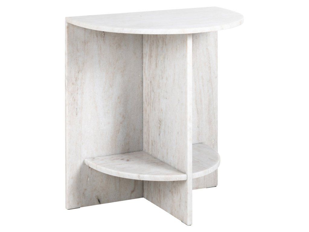 Príručný stolík Lansky je elegantný kus nábytku vyrobený z bieleho mramoru. Tento príručný stolík kombinuje luxusný vzhľad mramoru s elegantným a nadčasovým dizajnom, vďaka čomu je štýlovým doplnkom každého interiéru. Biela mramorová doska dodáva svieži a rafinovaný vzhľad, zatiaľ čo odolný materiál ponúka krásu aj funkčnosť.Dodatočné parametre