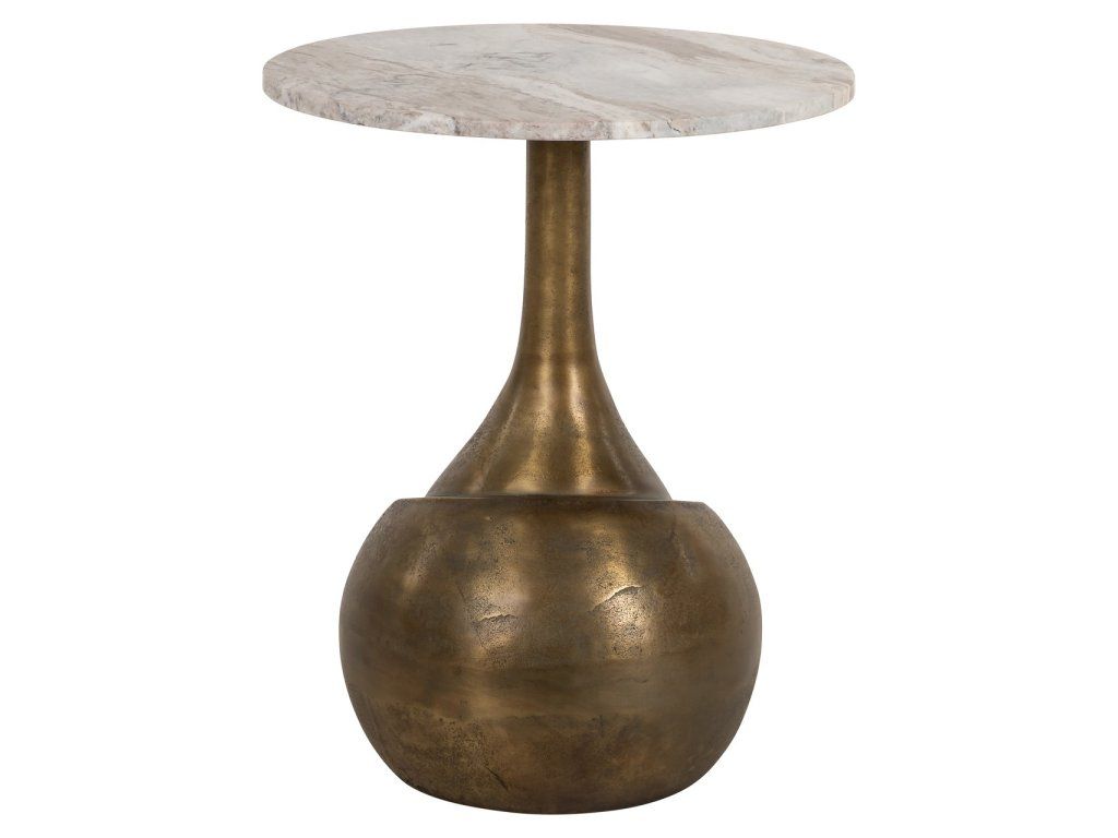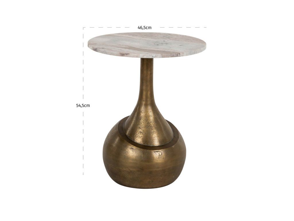 Príručný stolík Sia je luxusný akcentový stolík s vrchnou doskou z prírodného torontského mramoru a elegantnou hliníkovou základňou v zlatej farbe. Bohatý vzhľad mramoru v kombinácii s teplým kovovým rámom robí z tohto stolíka rafinovaný doplnok do každého moderného alebo hotelového štýlového interiéru. Perfektne sa hodí ako výrazný prvok vedľa pohovky, kresla alebo do štýlového kútika.Dodatočné parametre