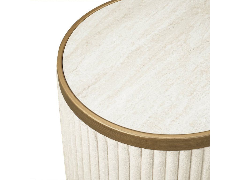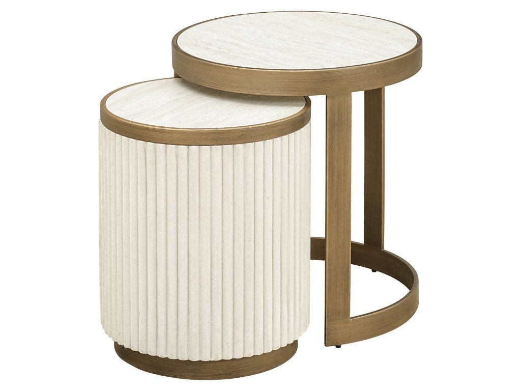 Súprava odkladacích stolíkov Tivoli sa vyznačuje zaoblenými tvarmi a panelmi s jemnou, rafinovanou textúrou látky, potiahnutými keramikou pre luxusný a odolný vzhľad. Vďaka kompaktným rozmerom sú ideálne ako odkladacie stolíky, nočné stolíky alebo dekoratívne doplnky v elegantných hotelových interiéroch.Dodatočné parametre