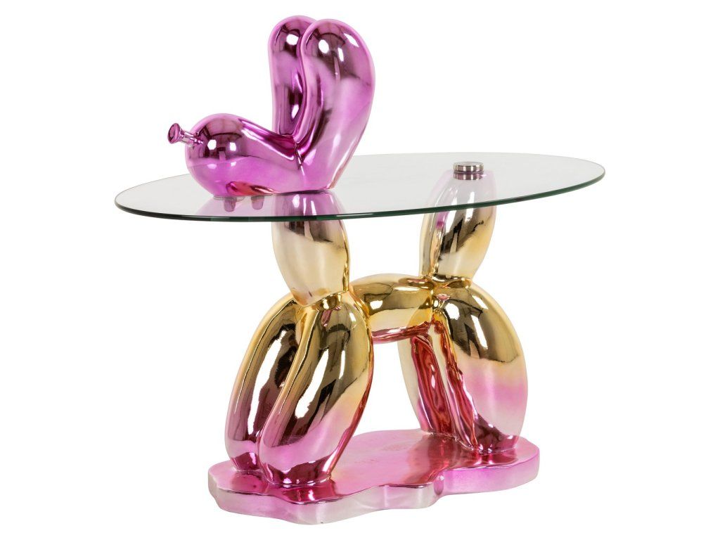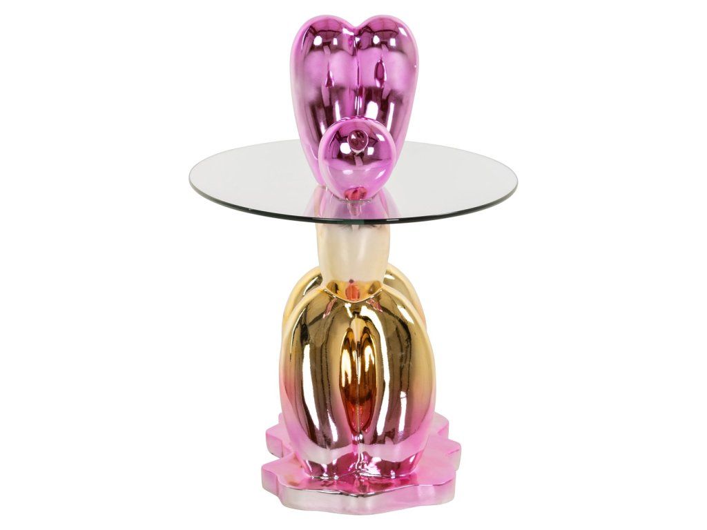 Konzolový stolík Usha je výrazný a umelecký kúsok vyrobený z plastu a bezpečnostného skla. Podstavec stola má hravý a sochársky tvar pripomínajúci balón s lesklým kovovým vzhľadom. Okrúhla doska z bezpečnostného skla ponúka pevný a priehľadný povrch, ktorý dokonale kontrastuje so žiarivým dizajnom podstavca. Tento koncový stolík je nielen funkčný, ale aj skutočným pútačom pozornosti v každom priestore, ideálny do moderných interiérov, ktoré chcú dodať nádych humoru a umenia.Dodatočné parametre