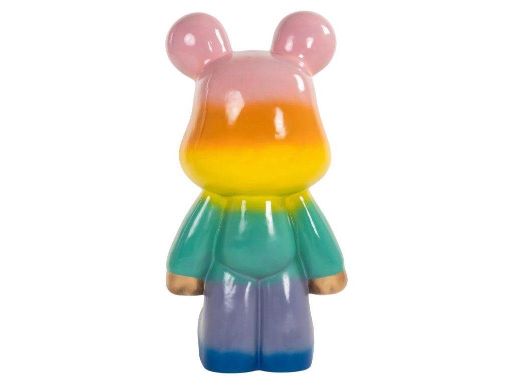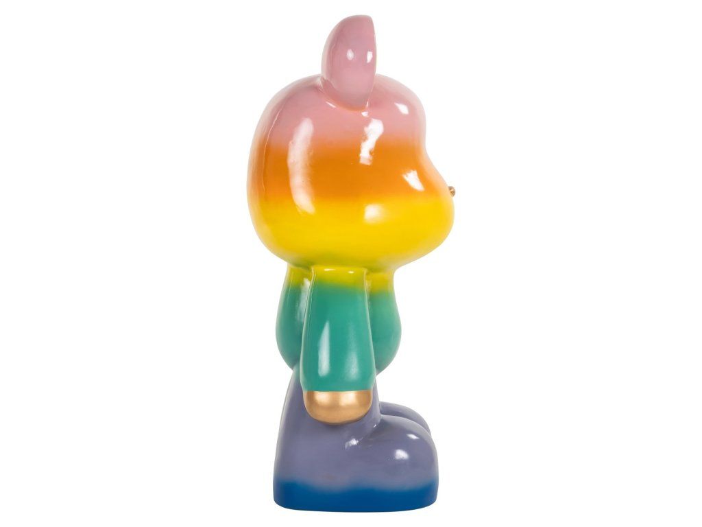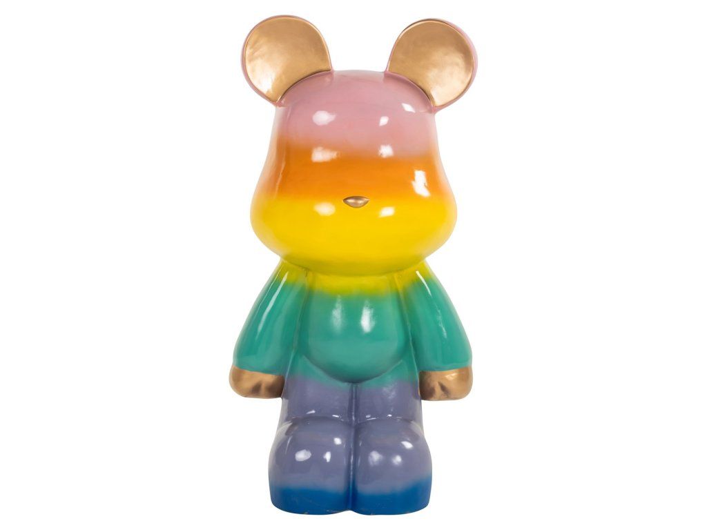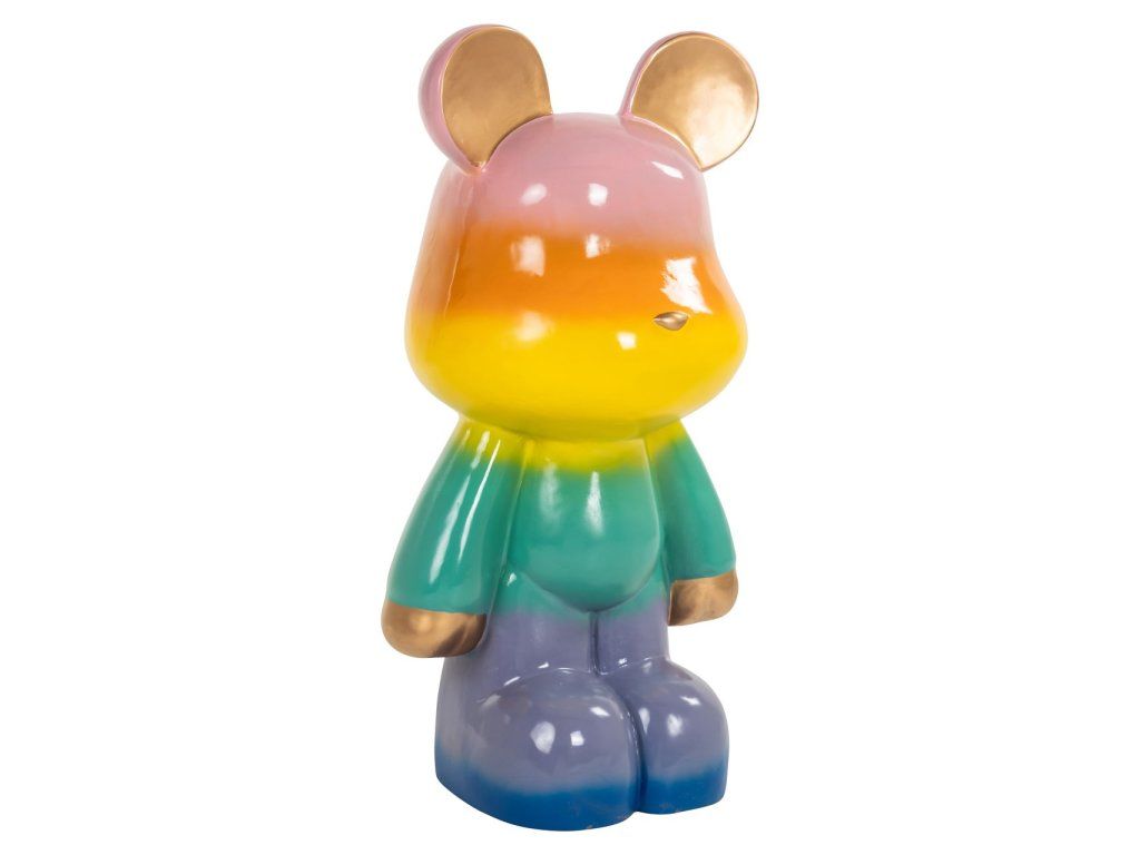 Baloo je výrazný dekoratívny predmet, ktorý dodá každému priestoru hravý a farebný vzhľad. Tento kúsok je navrhnutý so žiarivým dúhovým vzorom, ktorý vytvára veselú a dynamickú atmosféru. Lesklá povrchová úprava zvýrazňuje jasné farby, zatiaľ čo zlaté akcenty na ušiach a ručičkách dodávajú nádych luxusu. Baloo je perfektný ako výrazný kus nábytku v modernom interiéri alebo ako očarujúci detail v hravej miestnosti. Umiestnite tento jedinečný predmet na výrazné miesto a nechajte ho upútať pozornosť svojím neodolateľným šarmom.Dodatočné parametre