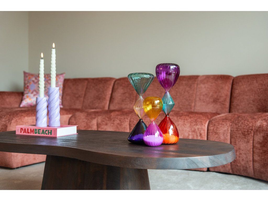 Presýpacie hodiny Jalina sa vyznačujú kombináciou fialovej, modrej a červenej farby. Sú vyrobené zo skla a slúžia ako tradičné presýpacie hodiny. Vďaka jednoduchému dizajnu sú vhodné do rôznych priestorov v domácnosti.Dodatočné parametre