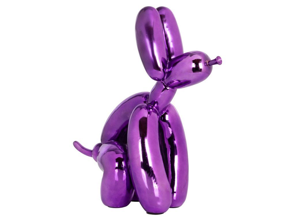 Tento dekoratívny predmet, vyhotovený v výraznom fialovom odtieni, má tvar psa. Jeho jedinečný dizajn určite upúta pozornosť v každom interiéri. Ideálny pre milovníkov zvierat, ktorí chcú rozjasniť svoj priestor hravým a farebným nádychom.Dodatočné parametre