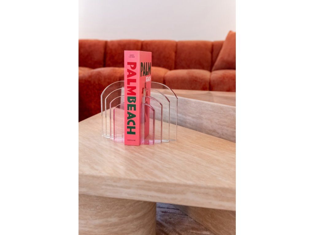 Stojan na knihy Alissia je elegantným a funkčným doplnkom každej knižnice alebo stola. Vyrobený z číreho skla, dizajn je umocnený jemne zakomponovanými ružovými detailmi, ktoré celku dodávajú jemný, ženský nádych.Dodatočné parametre