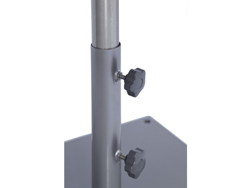 Podstavec slnečníka Como je veľmi pevný a vyrobený z práškovo lakovanej ocele. Sivý podstavec dokonale doplní biely alebo čierny slnečník a vytvorí elegantnú a štýlovú kombináciu. Podstavec je určený pre slnečníky s priemerom do 43 mm. Výber spoľahlivého a stabilného podstavca je prvoradý pre správne, bezpečné a pohodlné používanie záhradných slnečníkov. Keďže slnečníky sú vystavené poveternostným podmienkam, ako je dážď a vietor, oplatí sa investovať do odolného a kvalitného produktu, ktorý udrží slnečník v požadovanej polohe.Dodatočné parametre