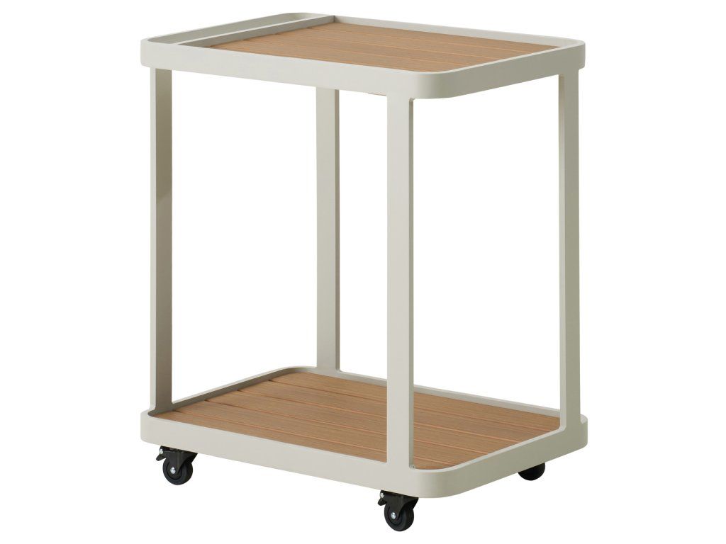 Záhradný vozík Spritz béžovej farby má pevný kovový rám s vrchnou doskou z prírodného dreva. Praktický a štýlový, ideálny na servírovanie nápojov alebo občerstvenia vonku.Dodatočné parametre
