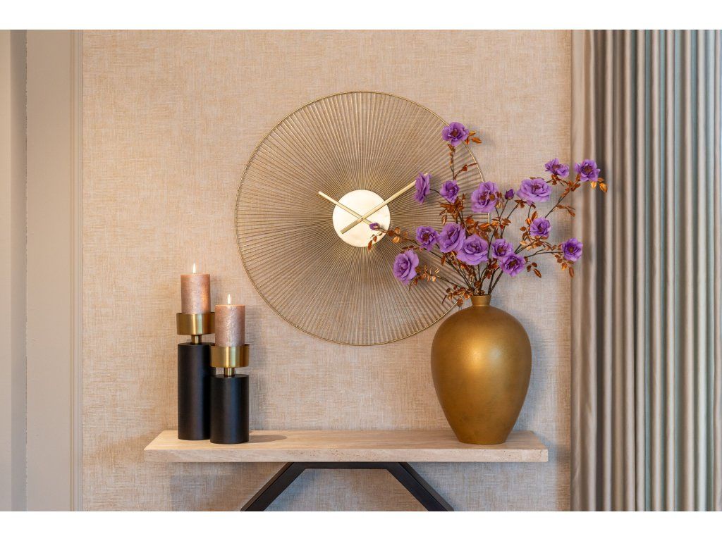 Hodiny sú nevyhnutným doplnkom do obývačky, spálne alebo pracovne. Doplnkom vášho priestoru sú naše hodiny Audrey. Svoje čaro vďačia použitej zlatej liatine. Priemer hodín je 90 cm, majú pôsobivý reliéf a sú bez číslic. Ide o veľmi štýlový model, ktorý sa krásne hodí k modernému interiérovému dizajnu.Dodatočné parametre