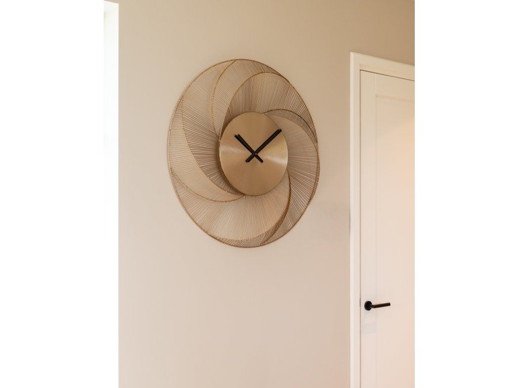 Nástenné hodiny Denver majú okrúhly tvar so zlatým rámom a jemnou textúrou slnečných lúčov. Štýlové nástenné hodiny, ktoré v sebe spájajú funkčnosť a dekoratívnu hodnotu.Dodatočné parametre