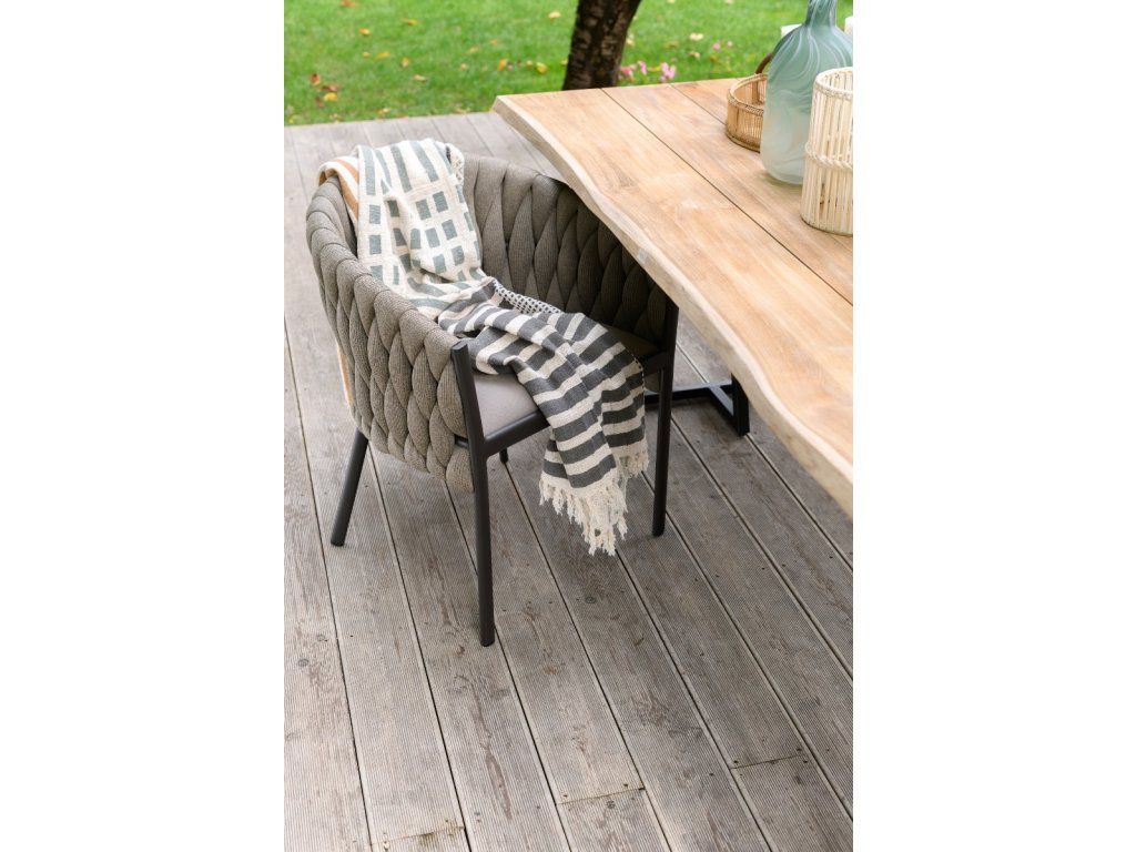 Záhradná stolička Kampala Taupe Miloo Home Stolička Kampala Taupe s rozmermi sedadla 61x62cm a výškou 76cm. Samotné sedadlo je vysoké 48,5cm. Táto stolička so zaobleným operadlom sa vyznačuje použitím vodeodolných materiálov. Operadlo samotné je vyrobené z látky Sunbrella, akrylovej látky farbenej v roztoku, ktorá je odolná voči škvrnám, vode a plesniam. Sunbrella si časom zachováva svoju farbu a odolnosť, čo výrazne zvyšuje kvalitu stoličky. Operadlo je vylepšené vyvýšenými, pletenými úpletmi, ktoré dodávajú moderný nádych. Výhody produktu: Látka Sunbrella (odolná voči poveternostným vplyvom), penová výplň QuickDry (antibakteriálna, rýchloschnúca), ľahká a odolná hliníková konštrukcia s práškovým nástrekom, jedinečný dizajn, perfektný doplnok do akejkoľvek záhradnej úpravy, pletená úplet dodáva moderný nádych. Detaily produktu: Materiál: hliník, Sunbrella, Farba: taupe, Rozmery: 61x62x76cm, Odolnosť voči vonkajším podmienkam. Výrobca: Miloo Home. Hliník: Klasifikovaný ako ľahký kov. Jeho hustota je približne 2,7 g/cm3, vďaka čomu je takmer trikrát ľahší ako oceľ. Hliníkové zliatiny vďaka vhodnému tepelnému spracovaniu vykazujú ešte niekoľkonásobne lepšie mechanické vlastnosti. Je to ideálny materiál pre vonkajší nábytok. Medzi jeho výhody patrí odolnosť a odolnosť proti korózii. Práškovo lakovaný hliník je odolný voči meniacim sa poveternostným podmienkam a oderu. (Práškový náter sa na hliníkovú konštrukciu nanáša elektrostatickým striekaním. Pre dosiahnutie maximálnej odolnosti a odolnosti sa práškový náter zahrieva na teploty medzi 160 °C a 210 °C.) Pri nízkych teplotách sa hliník stáva ešte odolnejším. Voda ho nespôsobuje hrdzaveniu. Nevyžaduje si žiadnu údržbu ani neustálu starostlivosť. Tieto ľahké konštrukcie preto nevyžadujú veľkú silu pri ich premiestňovaní z jedného miesta v záhrade na druhé. Napriek svojej ľahkosti sú stabilné a odolné. Vydržia mnoho rokov používania v interiéri aj exteriéri. Sunbrella: Toto je značka, ktorá dnes udáva trendy v riešeniach ochrany pred slnkom, námorných látkach a čalúnení pre vnútorné aj vonkajšie použitie. Látky Sunbrella sa vyrábajú v továrňach po celom svete. Sunbrella je založená na presvedčení, že látky by mali byť krásne aj funkčné. Látky, ktoré sú príjemné na dotyk a pevné, spĺňajú prísne environmentálne požiadavky, ľahko sa udržiavajú a ponúkajú dlhú životnosť bez ohľadu na podmienky používania. Vďaka bezkonkurenčnej odolnosti odolávajú blednutiu a zhoršovaniu kvality v dôsledku slnečného žiarenia a chemikálií. Sú odolné voči plesniam a ľahko sa udržiavajú bielidlom, takže opaľovacie látky Sunbrella vám poskytnú ochranu, ktorú potrebujete pred poveternostnými vplyvmi na dlhé roky. Látka je odolná voči UV žiareniu a vyblednutiu; vlákna Sunbrella sú napustené farbivami, ktoré sú vysoko odolné voči UV žiareniu. Tradičné metódy farbenia dodávajú farbu iba vonkajšej vrstve vlákna. Tieto vlastnosti sú vlastné materiálu, nie sú len povrchovou vrstvou, ktorá sa časom vymýva. Odolnosť voči plesniam: Látky Sunbrella sú odolné voči plesniam; aby ste ich udržali čisté, jednoducho utrite škvrny skôr, ako zaschnú. Čistenie bielidlom: Na jednoduché odstránenie odolných škvŕn z látok Sunbrella použite bielidlo. Pretože farba preniká do vlákna, látka si zachováva svoju farbu. Ochrana pred slnkom: Nadácia pre starostlivosť o pleť odporúča látky Sunbrella, pretože v kombinácii s inými ochrannými opatreniami, ako je pravidelná aplikácia opaľovacieho krému, môžu pomôcť chrániť pokožku pred škodlivými slnečnými lúčmi. Priedušnosť: Látky Sunbrella s ochranou proti slnku sú priedušné a umožňujú pohodlný relax vonku. Perfektný doplnok k záhradnej stoličke Kampala:Dodatočné parametre