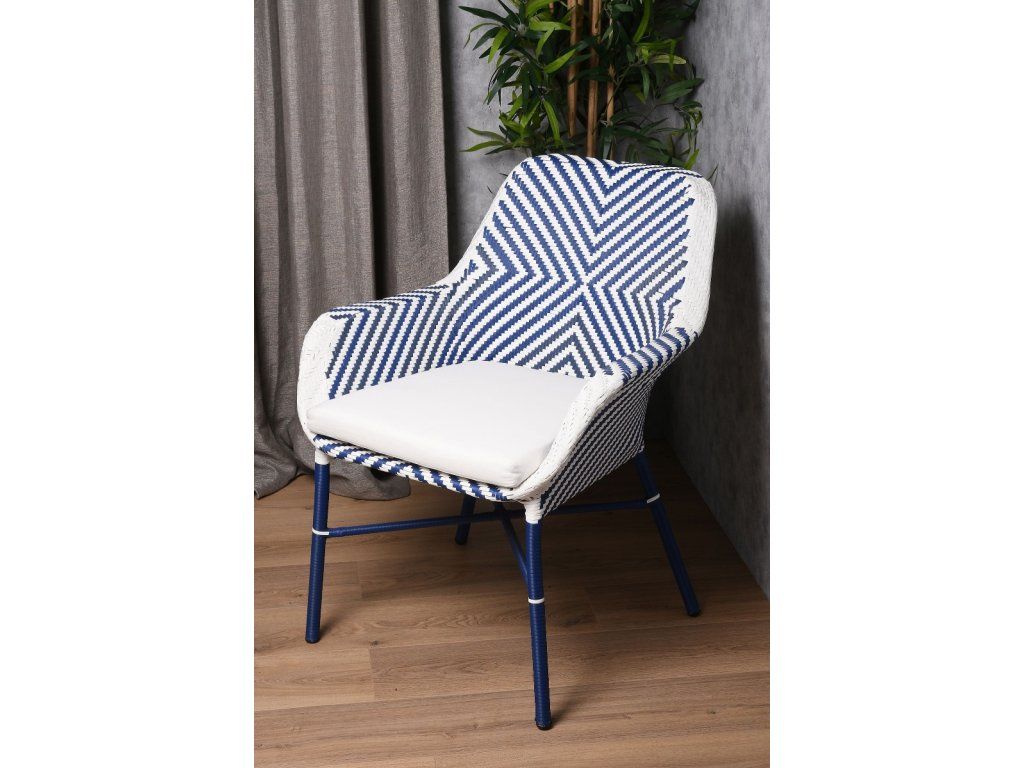 STOLIČKA SEA ADVENTURE 71X73X88 SYNTETICKÝ RATAN, MODRÁ BIELA, ČIERNEJ OCEĽOVEJ NOHY