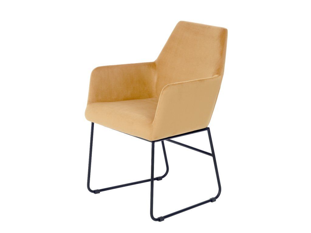 JEDÁLENSKÁ STOLIČKA QUADRATO 56X63X89, ZAMATOVÁ HORČIČKOVÁ, ČIERNEJ MATNEJ KOVOVEJ NOHY