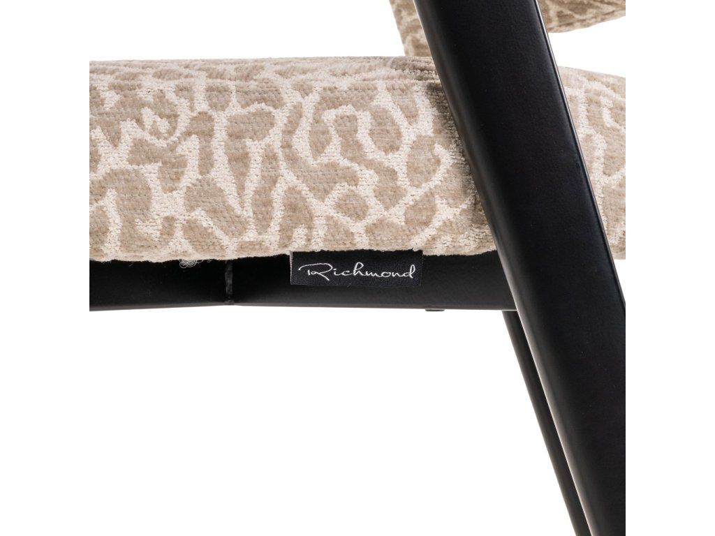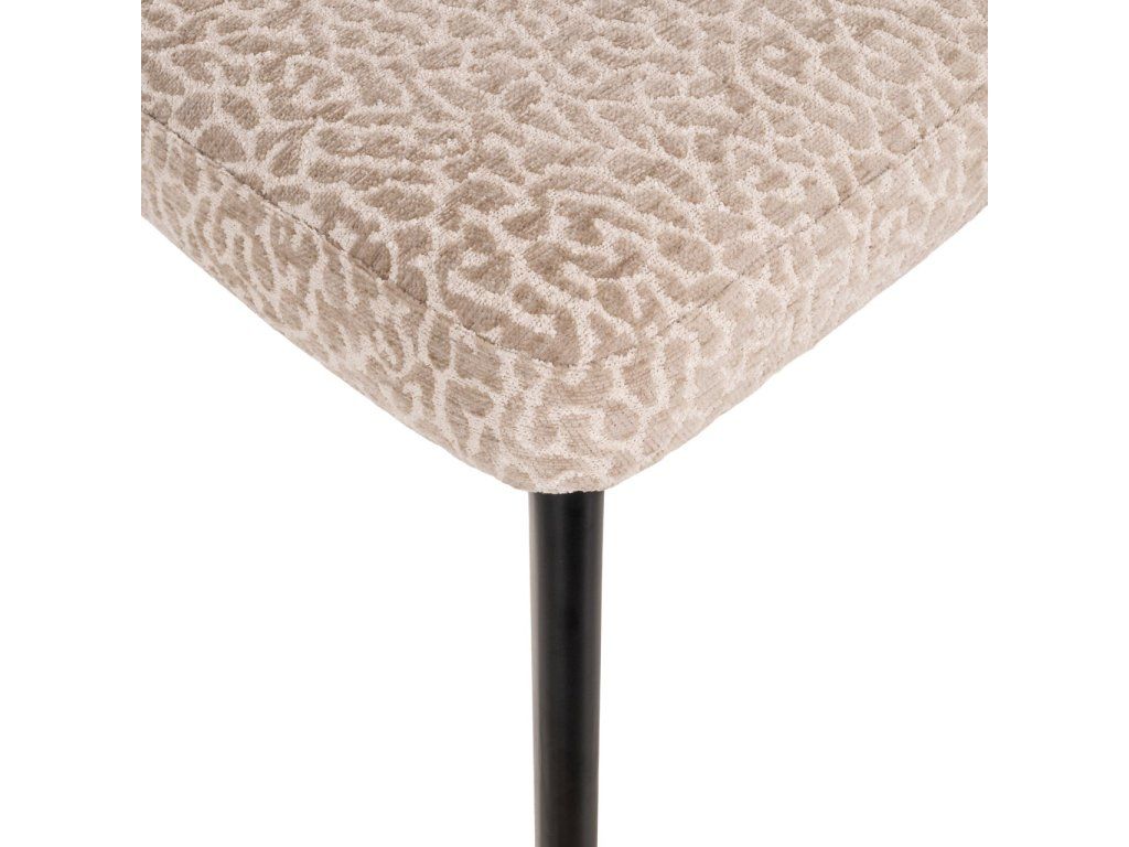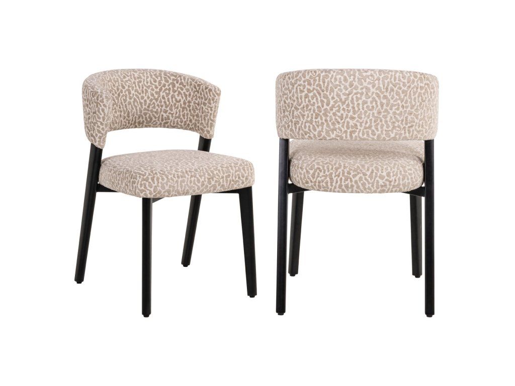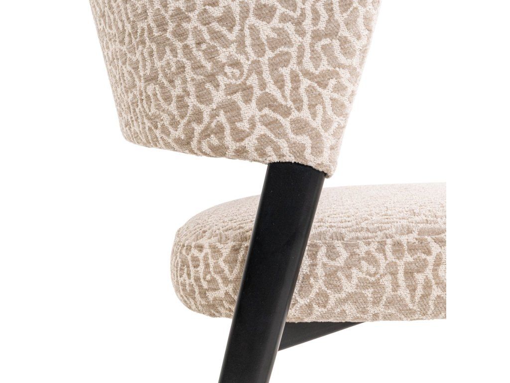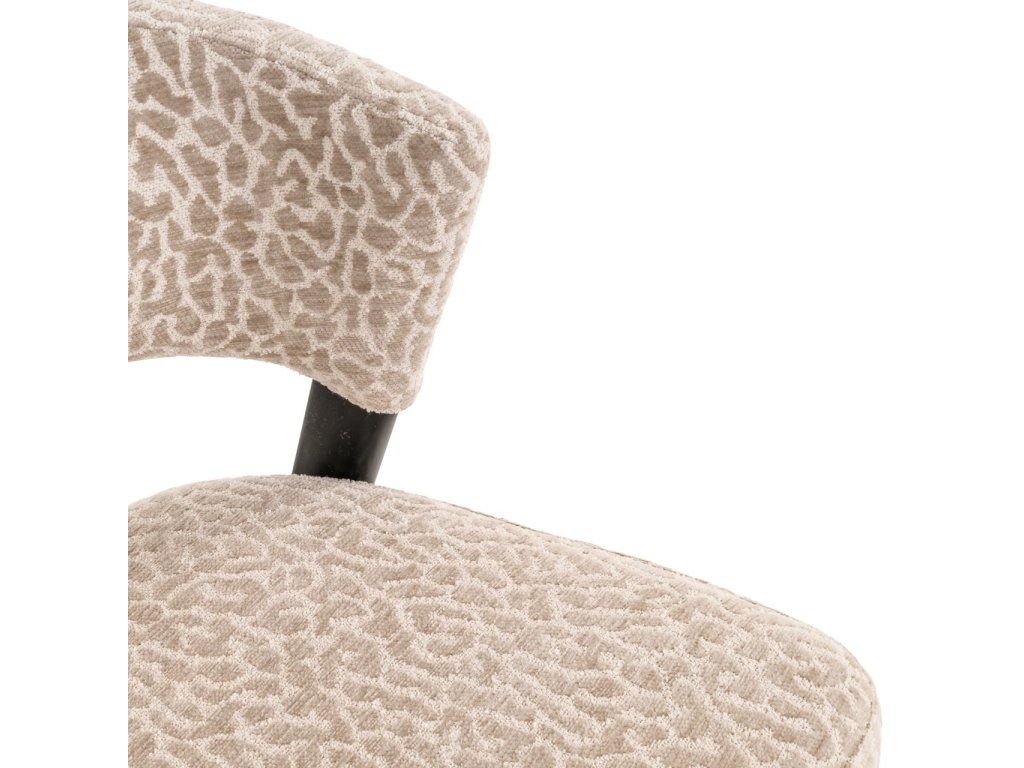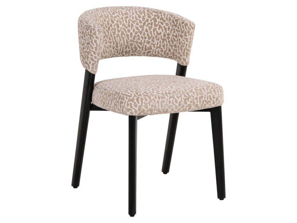 Jedálenská stolička Zeno má kompaktnú siluetu s jemnými krivkami a minimálnou opierkou na ruky. Čierne kovové nohy a béžová leopardia látka jej dodávajú hravý nádych. K dispozícii aj v earth tweed farbe.Dodatočné parametre