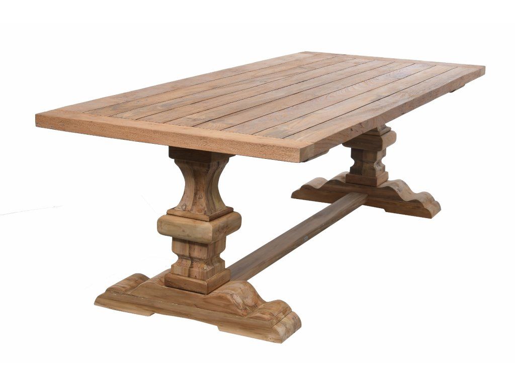 Drevený záhradný stôl Bali má rozmery 240x100 cm a výšku 77 cm. Stôl je povrchovo upravený v prírodnej farbe recyklovaného teakového dreva, vďaka čomu je elegantným doplnkom každého prostredia. Použitie teakového dreva, ktoré obsahuje olejovité látky, robí stôl odolným a pevným, dobre odoláva UV žiareniu a vlhkosti. Obdĺžniková doska stola a dve nohy spojené v spodnej časti jemnou ornamentikou dodávajú stolu jedinečný štýl. Záhradný stôl Bali je ideálny pre klasické aj rustikálne prostredie. Teakové drevo: Teakové drevo je druh dreva pôvodom z Ázie, kde tvorí bujné monzúnové lesy. Strom môže dosiahnuť vek približne 200 rokov a výšku až 46 metrov. Teakové drevo sa môže pestovať aj na plantážach. Je to jedno z najuniverzálnejších a najodolnejších exotických drevín. Je odolné voči poveternostným vplyvom. Drevo neabsorbuje vodu a je vysoko odolné voči čistiacim prostriedkom. Je bohaté na oxid kremičitý a impregnačné oleje, a preto má vynikajúce vlastnosti. Pôvodne je teakové drevo zlatohnedé. Postupom času hnedne, čo je farba, ktorá sa opisuje a prirovnáva ku koňaku. Ak sa teakové drevo nechá vonku v daždi a vystaví sa všetkým poveternostným vplyvom, nakoniec získa charakteristickú sivú farbu. Tomu sa dá vyhnúť jeho konzerváciou. Jedinečnosť teakového dreva: Ľahko odoláva vlhkosti, slnku, mrazu a teplotným zmenám. Je obzvlášť vhodné na trvalé vonkajšie použitie a je vysoko odolné. Obsahuje veľa olejových látok, preto nie je potrebné olejovanie. Vyznačuje sa dlhou životnosťou. Teakové drevo pri schnutí nestráca svoj objem, nenapučiava a nedeformuje sa. Medzi ďalšie výhody patrí odolnosť voči hubám a drevokazu, za predpokladu, že je drevo správne konzervované. Teakové drevo je tiež odolné voči plesniam a chemickým roztokom. Pozri tiež:Dodatočné parametre