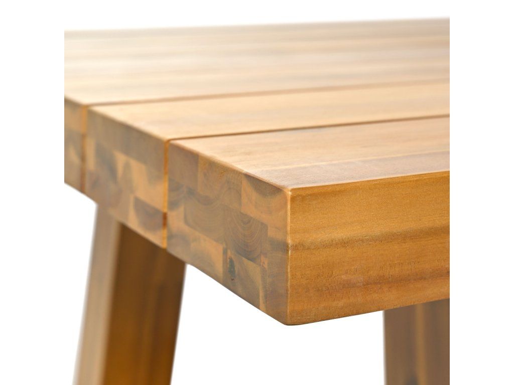 Jedálenský stôl Breeze XL je perfektným doplnkom záhradnej jedálne. Poskytuje dostatok priestoru na servírovanie jedál rodine a hosťom. Optimálna výška zabezpečuje neuveriteľne pohodlné sedenie. Je vyrobený z akáciového dreva, je to tiež pevný a odolný kus nábytku. Je odolný voči mechanickému poškodeniu, nadmernému UV žiareniu, vlhkosti a teplotným zmenám. Ľahko sa čistí a udržiava. Jedálenský stôl Breeze XL je nielen praktický, ale aj esteticky príjemný. Vyznačuje sa rustikálnym štýlom. Hodí sa aj do interiérov v štýle shabby chic, provensálskeho alebo klasického štýlu. Jeho doska sa vyznačuje jasne definovanou textúrou a skrútenými drevenými vláknami. Stôl je povrchovo upravený v prírodnom odtieni akáciového dreva – žltohnedej. Výhody produktu: veľké rozmery, ktoré pojmú až dvanásť osôb, stabilná a pevná základňa, pevný a odolný materiál, vysoká odolnosť voči meniacim sa poveternostným podmienkam, hodí sa do mnohých interiérov: klasického, rustikálneho, anglického, provensálskeho a shabby chic. Detaily produktu: materiál: akáciové drevo, farba: prírodná, rozmery: 300x100x75cm, výrobca: Miloo Home. Informácie o materiáli: Akáciové drevo: Surovina sa získava z akácie čiernej. Je to vysoký strom s bielymi alebo krémovými kvetmi, ktoré sa vyznačujú príjemnou arómou. Akáciové drevo sa považuje za jeden z najodolnejších druhov. Jeho trvanlivosť je porovnateľná s dubovým drevom a vykazuje vysokú prirodzenú odolnosť voči nepriaznivým poveternostným podmienkam. Je to ľahké drevo (farba sa však mení), s jasne definovanými letokruhmi a skrútenými vláknami. Tento druh dreva má prirodzenú žltú farbu, ktorá schnutím tmavne do hneda. Jeho použitie je bezproblémové. Jedinečnosť akáciového dreva: akáciové drevo je veľmi pružné, takže sa ľahko nedeformuje ani nepraská. Vďaka svojej výnimočnej odolnosti voči poveternostným vplyvom a vysokej trvanlivosti je ideálne na záhradný nábytok. Drevený záhradný nábytok je teplý na dotyk, krásne starne a jeho prirodzené farby nikdy neurazia. Môže vydržať najmenej 25 rokov, je odolný voči plesniam a každoročný olejový náter zachová sýtu farbu a zvýrazní výrazné tóny dreva, vďaka ktorým je toto drevo také vizuálne atraktívne a obľúbené. Je to ekologický materiál na záhradný nábytok. Pozri tiež:Dodatočné parametre