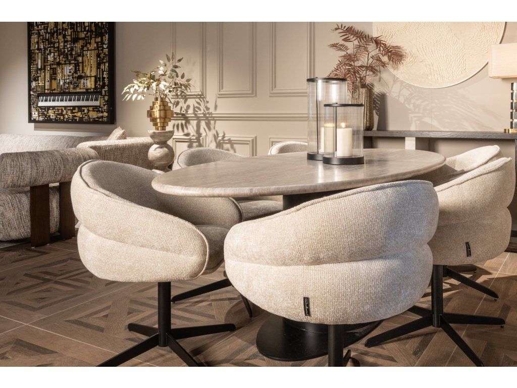 Jedálenský stôl Brodman 200 je elegantný a moderný kus nábytku vyrobený z kombinácie mramoru a železa. Priestranná oválna doska stola je vyrobená z vysoko kvalitného mramoru, ktorý vďaka svojmu prirodzenému žilkovaniu prináša do jedálne pocit luxusu a elegancie. Stôl je podopretý pevnou valcovou železnou podnožou, ktorá ponúka stabilitu aj elegantný, moderný vzhľad. Vďaka svojej veľkorysej veľkosti 200 cm je tento jedálenský stôl ideálny na vytvorenie štýlového ústredného bodu v každej jedálni, ideálny na každodenné stolovanie aj špeciálne príležitosti.Dodatočné parametre