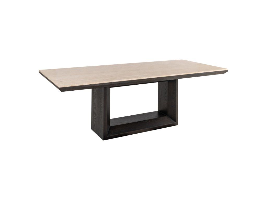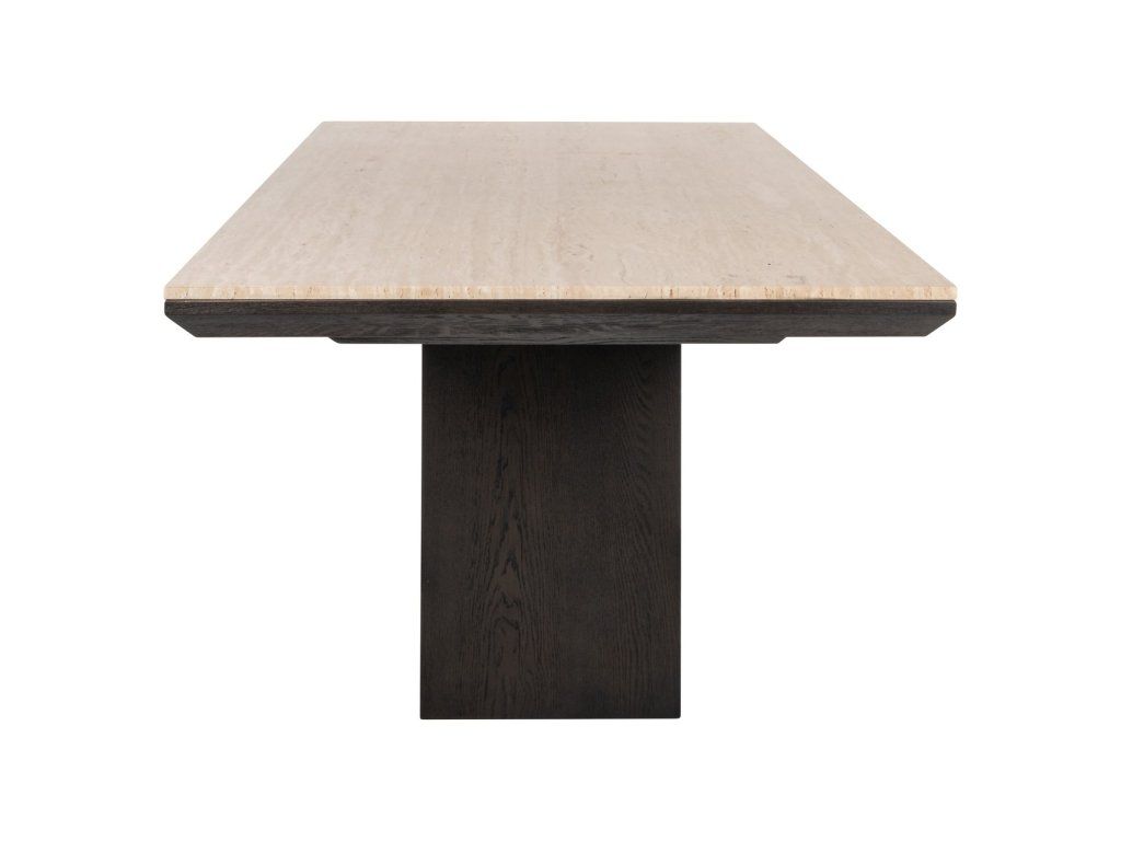 Jedálenský stôl Claremont kombinuje výraznú, tmavú základňu s luxusnou travertínovou doskou. Sochárska silueta z neho robí výrazný stredobod každej jedálne.Dodatočné parametre