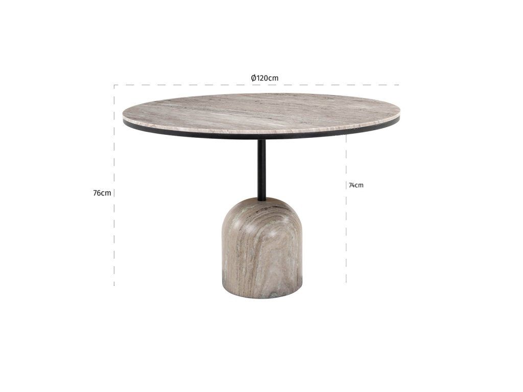 Jedálenský stôl Duncan je rafinovaný a štýlový kus nábytku vyrobený z kombinácie mramoru a železa. Okrúhla doska stola je vyrobená z vysoko kvalitného mramoru s krásnym prírodným žilkovaním, ktoré jej dodáva luxusný a nadčasový vzhľad. Vrchná doska spočíva na štíhlom, čiernom železnom ráme spojenom s pevnou mramorovou základňou, ktorá poskytuje stabilitu a moderný, sochársky vzhľad. Tento jedálenský stôl je ideálny do menších aj väčších priestorov a dodá elegantný akcent každej jedálni.Dodatočné parametre