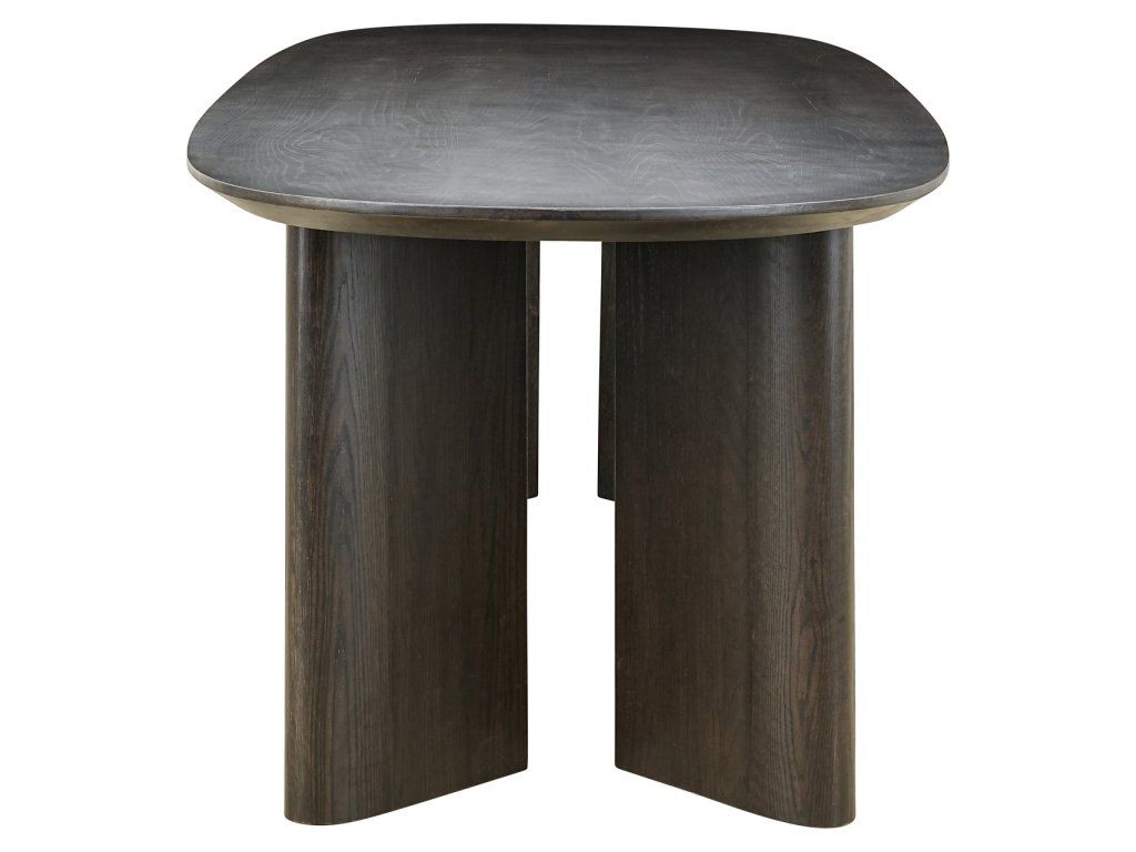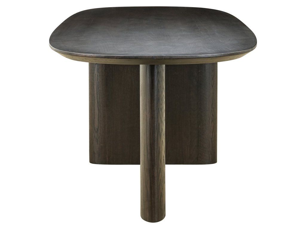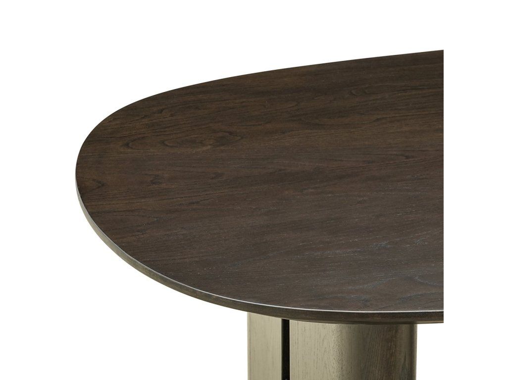 Jedálenský stôl Durban v hnedej farbe je vyrobený z dubovej dyhy, dubového dreva a preglejky, čo zaisťuje pevnú a odolnú konštrukciu. Stôl sa vyznačuje elegantnou oválnou doskou, ktorá mu dodáva nadčasový a moderný vzhľad. Teplá hnedá farba zvýrazňuje prirodzenú štruktúru dreva, vďaka čomu je stôl rafinovaným a štýlovým doplnkom každej jedálne. Jedálenský stôl Durban je k dispozícii v troch veľkostiach: 220 cm, 250 cm a 300 cm, vďaka čomu je vhodný do rôznych jedálenských priestorov a na stretnutia. Tento stôl kombinuje funkčnosť s elegantným a moderným dizajnom.Dodatočné parametre