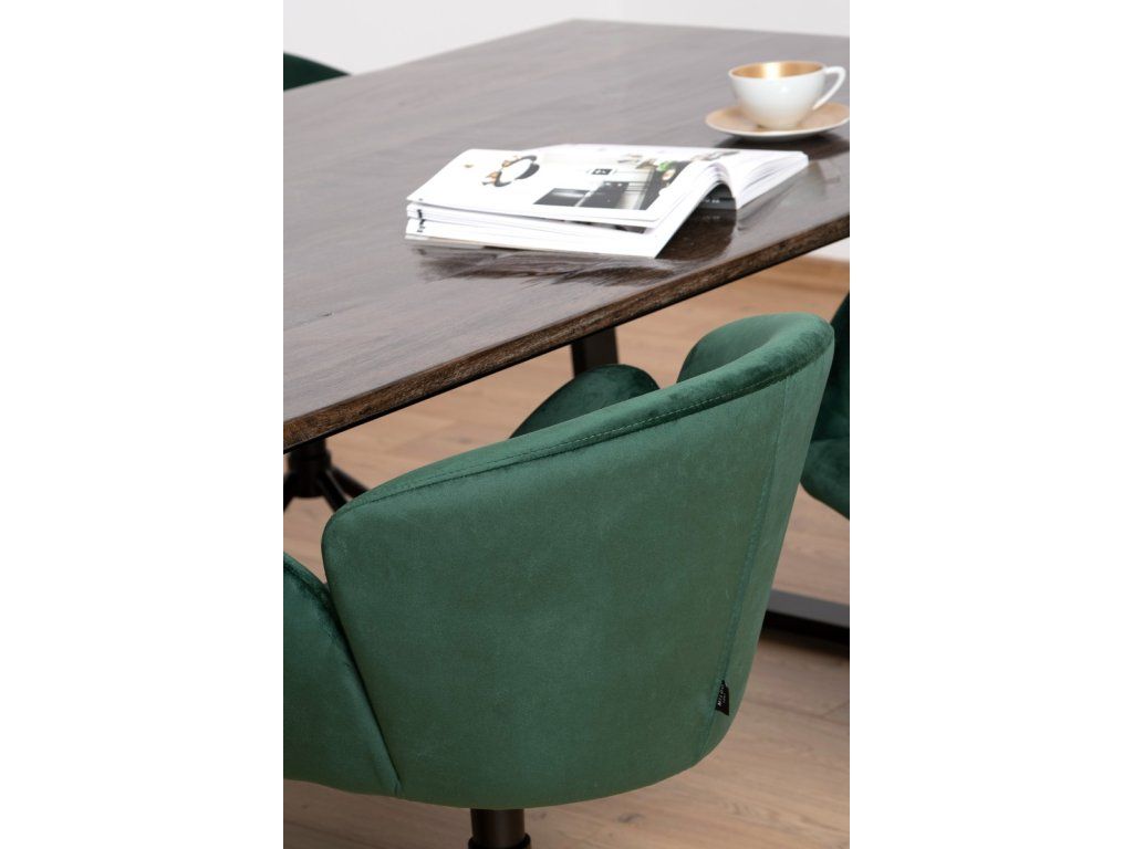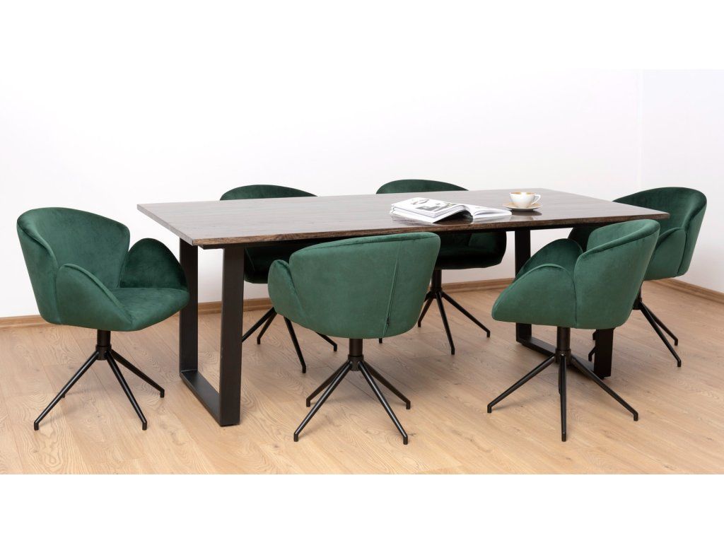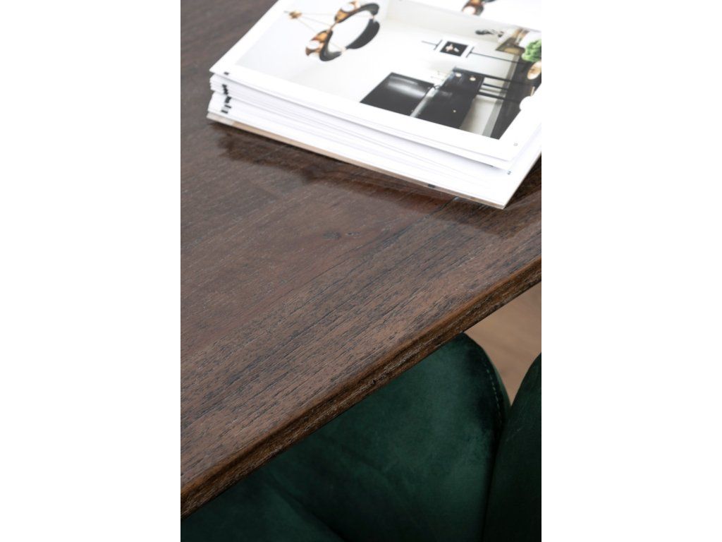Jedálenský stôl Leon s rozmermi 200x100x76 cm je unikátny kus vyrobený z mangového dreva. Jeho vrchná doska má vysoko lesklý povrch, ktorý mu dodáva elegantný vzhľad. Tmavohnedý odtieň, hraničiaci s čiernou, dopĺňa čiernu oceľovú základňu s kruhovým dizajnom. Starostlivo vybrané mangové dosky vytvárajú jedinečný vzor. Jedálenský stôl Leon sa dokonale hodí do interiérov v loftovom štýle alebo do interiérov s nádychom pôvabu. Rozmery stola Leon umožňujú pohodlné stolovanie pre štyri alebo dokonca šesť osôb. Vďaka tomu je ideálnym priestorom nielen na každodenné stolovanie, ale aj na večierky alebo rodinné stretnutia. Jeho všestranný, no zároveň jedinečný štýl z neho robí perfektný doplnok do formálnych priestorov, ako sú obývačky alebo jedálne. Poslúži ako praktický aj dekoratívny prvok. Stôl Leon bude vyzerať najlepšie v kombinácii s čalúnenými stoličkami v akomkoľvek odtieni alebo s tými, ktoré sú zdobené francúzskym vrkočom.Dodatočné parametre
