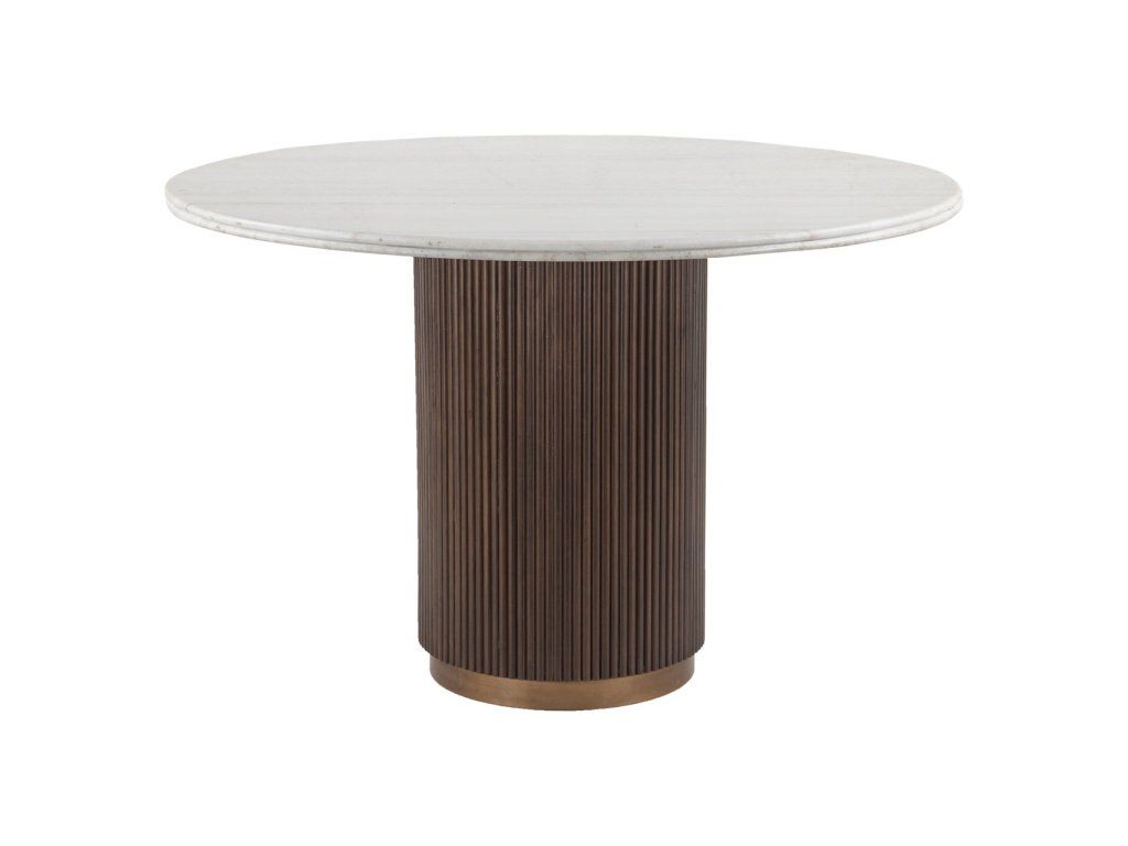 Jedálenský stôl Mayfield kombinuje drevo, mramor a kov v elegantnom a nadčasovom dizajne. Doska stola je vyrobená z mramoru, čo mu dodáva luxusný vzhľad, zatiaľ čo drevená základňa s kovovými detailmi ponúka pevnú a robustnú oporu. Stôl je k dispozícii v dvoch veľkostiach: 120Ø a 140Ø, vďaka čomu je vhodný do rôznych jedálenských priestorov. Vďaka týmto materiálom a veľkostiam je jedálenský stôl Mayfield všestrannou voľbou pre klasické aj moderné interiéry.Dodatočné parametre