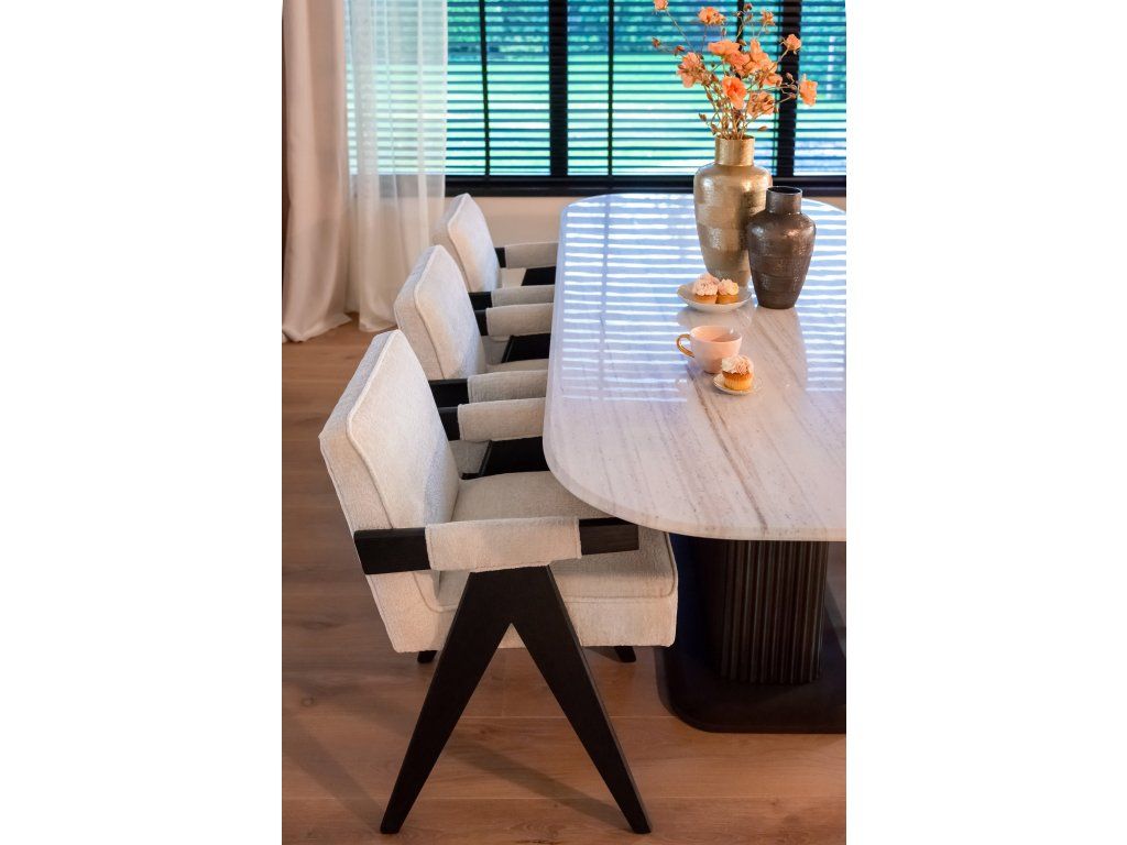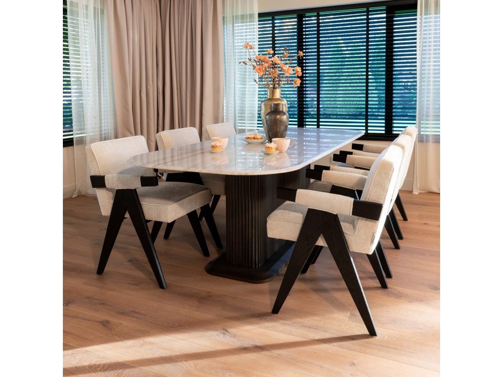 Jedálenský stôl Mayfield 230 stelesňuje eleganciu a robustnosť. Doska stola, vyrobená z vysoko kvalitného mramoru, je nielen odolná, ale aj nadčasovo elegantná, vďaka čomu sa stane výrazným stredobodom každej jedálne. Unikátne žilkovanie a lesklý povrch mramoru dodávajú stolu luxusný vzhľad. Pod mramorovou doskou sa nachádza podnožie, ktoré kombinuje drevo a kov, čím vytvára krásny kontrast a dodáva mu väčšiu stabilitu.Dodatočné parametre