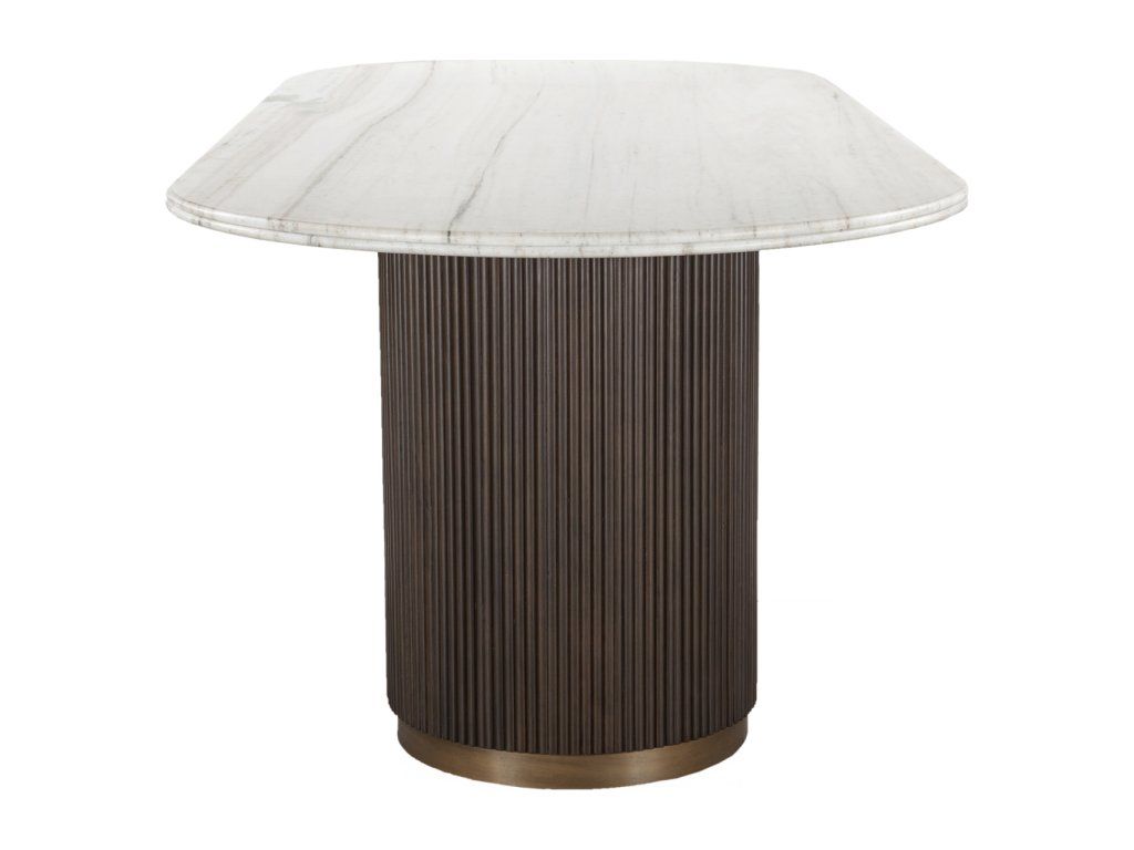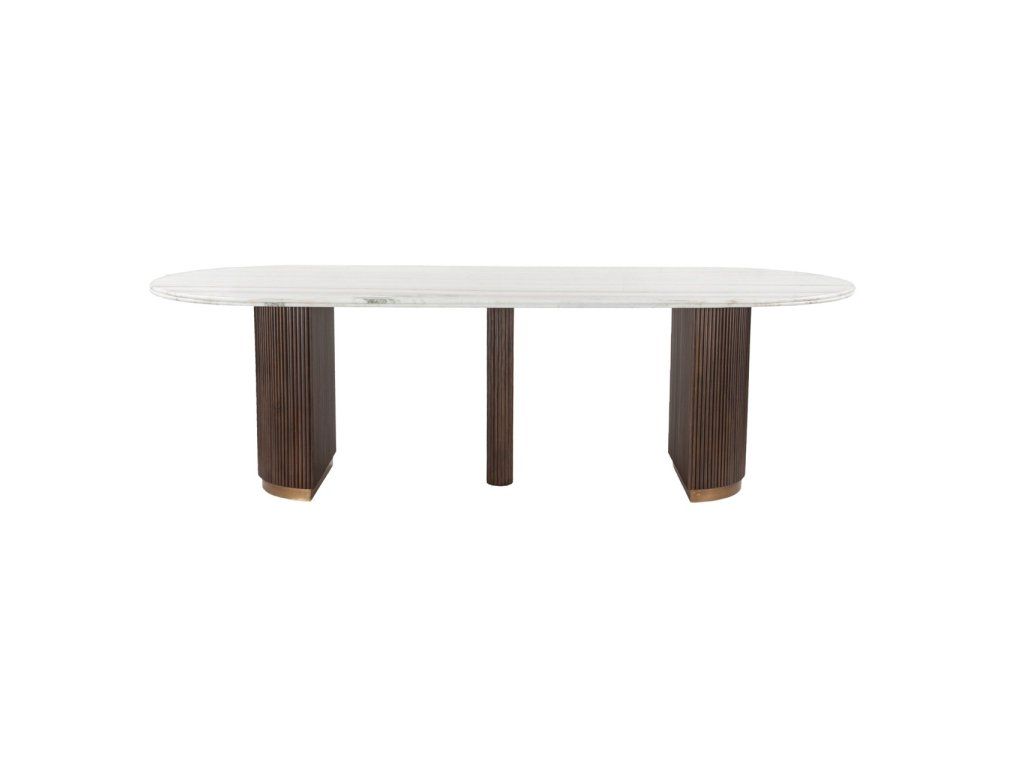 Jedálenský stôl Mayfield je vyrobený z kombinácie mangového dreva, mramoru, kovu a mosadze, čo mu dodáva rafinovaný a odolný vzhľad. Mramorová doska dodáva luxusný vzhľad, zatiaľ čo drevená podnož s kovovými a mosadznými prvkami ponúka robustnú a štýlovú oporu. Stôl je k dispozícii v dvoch veľkostiach: 210 cm a 250 cm, vďaka čomu je vhodný do menších aj väčších jedálenských priestorov. Tento stôl dodá elegantný a nadčasový prvok každému interiéru.Dodatočné parametre