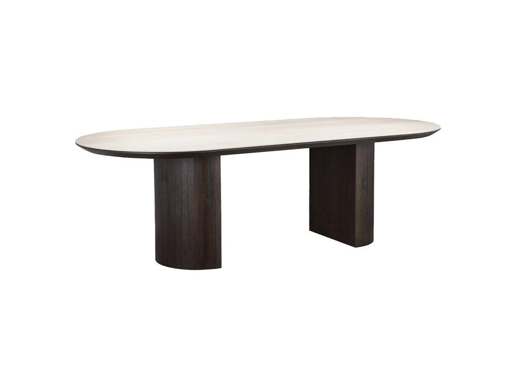 Jedálenský stôl Ritz 240 je elegantný a odolný kus nábytku vyrobený z kombinácie dubovej dyhy, keramiky, MDF a recyklovaného dreva. Veľkorysá doska stola je povrchovo upravená keramikou s travertínovým vzhľadom, čo mu dodáva luxusný vzhľad a robustný, ľahko udržiavateľný povrch. Dubová dyha a nohy z recyklovaného dreva ponúkajú stabilitu a prispievajú k udržateľnému charakteru stola. Vďaka svojmu prepracovanému dizajnu a vysoko kvalitným materiálom je Ritz 240 perfektnou voľbou do štýlových jedálenských priestorov.Dodatočné parametre
