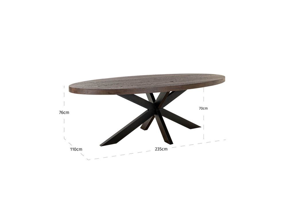 Jedálenský stôl Watson (235 cm) je skutočným pútačom pozornosti v každej jedálni vďaka teplej hnedej doske a výraznej čiernej podnoži v tvare pavúka. Veľkorysá veľkosť ponúka dostatok priestoru na večere a dlhé večery pri stole. Tento stôl kombinuje moderný vzhľad s praktickou robustnosťou a je k dispozícii aj vo väčšej 300 cm verzii – ideálny pre veľké stretnutia alebo priestranné interiéry.Dodatočné parametre