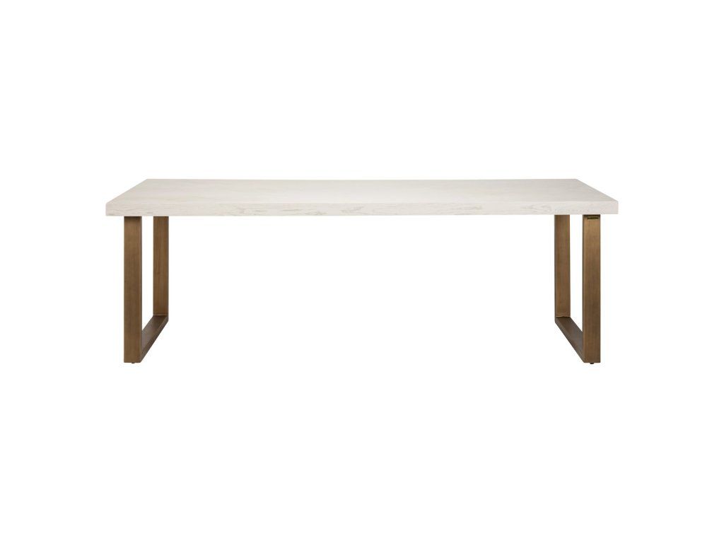 Tento elegantný jedálenský stôl z kolekcie Whitebone Brass je vyrobený z vysoko kvalitnej dubovej dyhy, ktorá mu dodáva prirodzený a rafinovaný vzhľad. Nohy stola sú vyrobené z kovu medenej farby, ktorý štýlovo kontrastuje s doskou stola z bielej kosti. S dĺžkou 235 cm ponúka tento stôl dostatok priestoru na útulné večere s rodinou a priateľmi.Dodatočné parametre