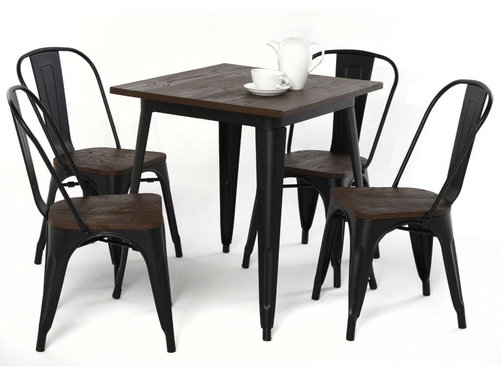 Stôl ALTEA, kov + drevená doska, rozmery 70x70x75, matná čierna