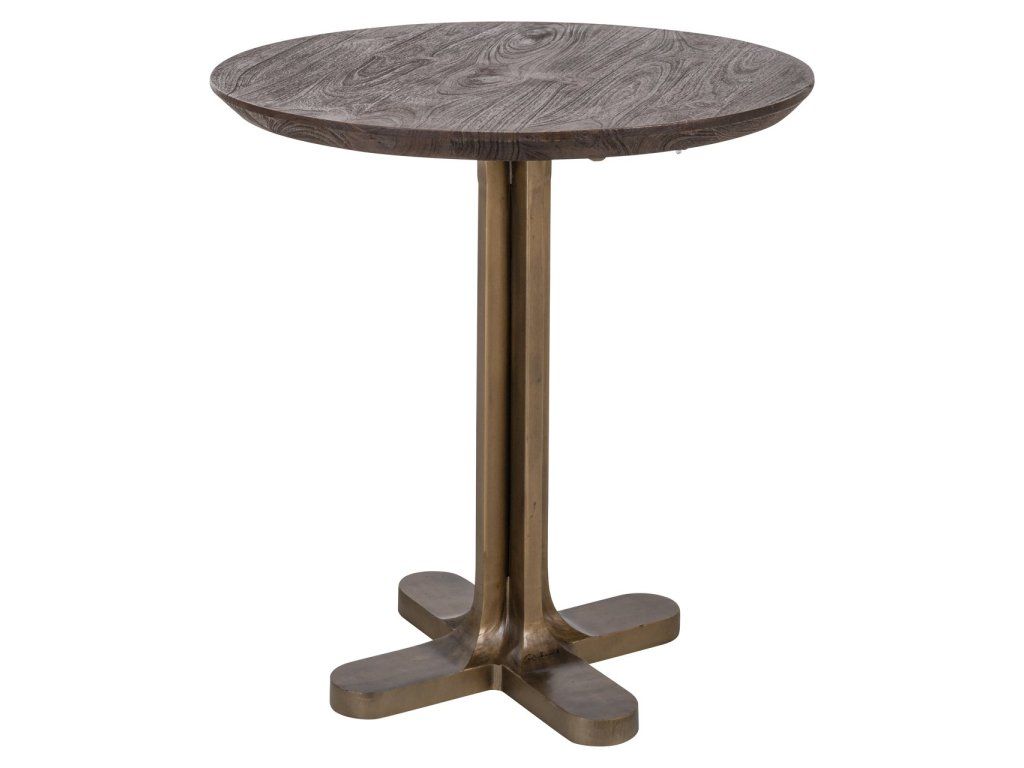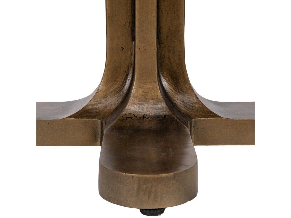 Bistro stolík Revelin má kompaktnú okrúhlu dosku v tmavohnedej farbe a podnožku v brúsenej zlatej farbe. Ideálny do menších jedální alebo štýlových raňajkových kútikov.Dodatočné parametre