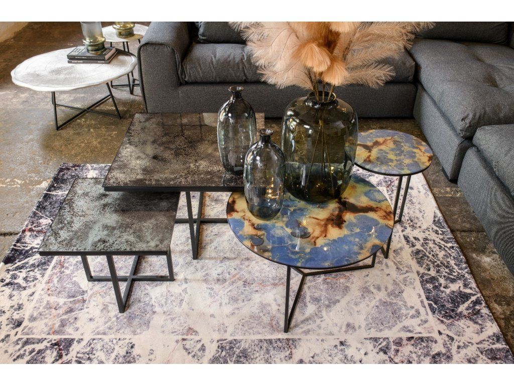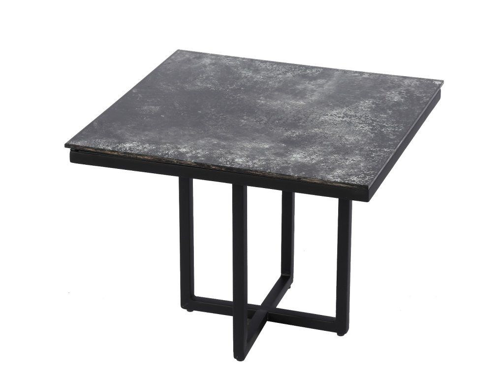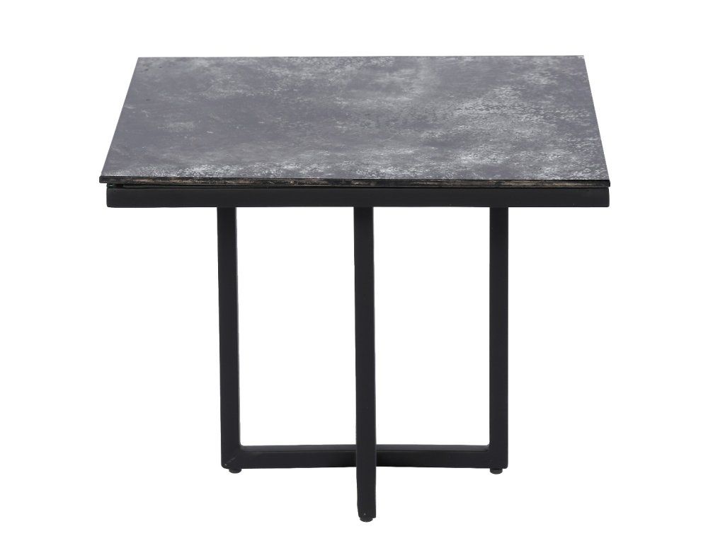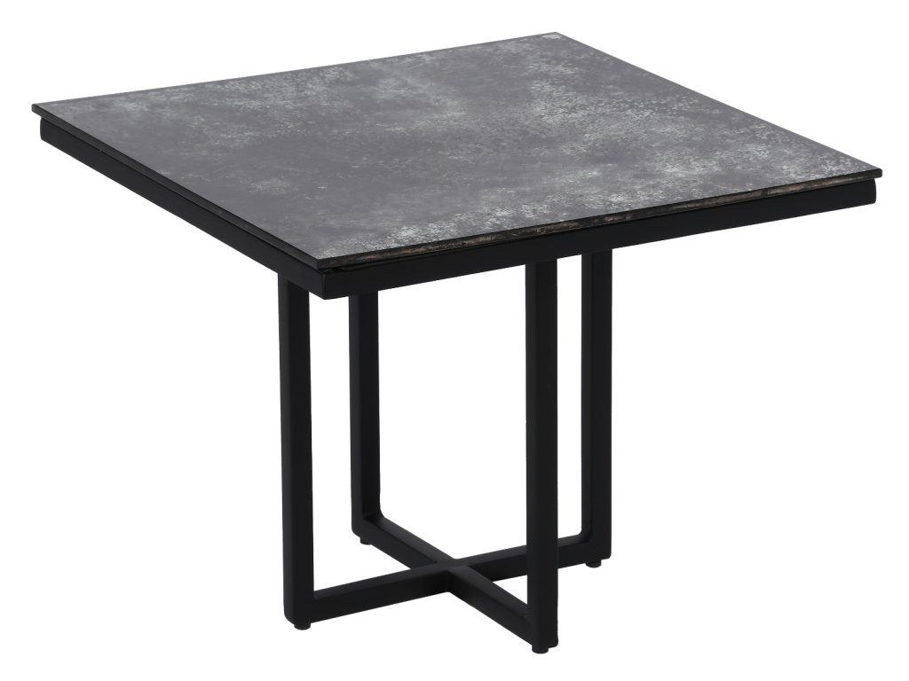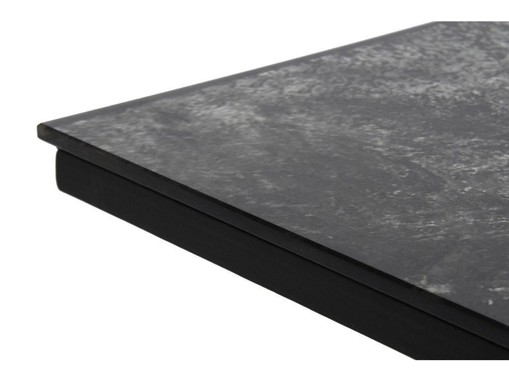 Elegantný konferenčný stolík 50x50x39 so sklenenou doskou, vzor kameňa, sivá, oceľový podstavec, čierna, matná