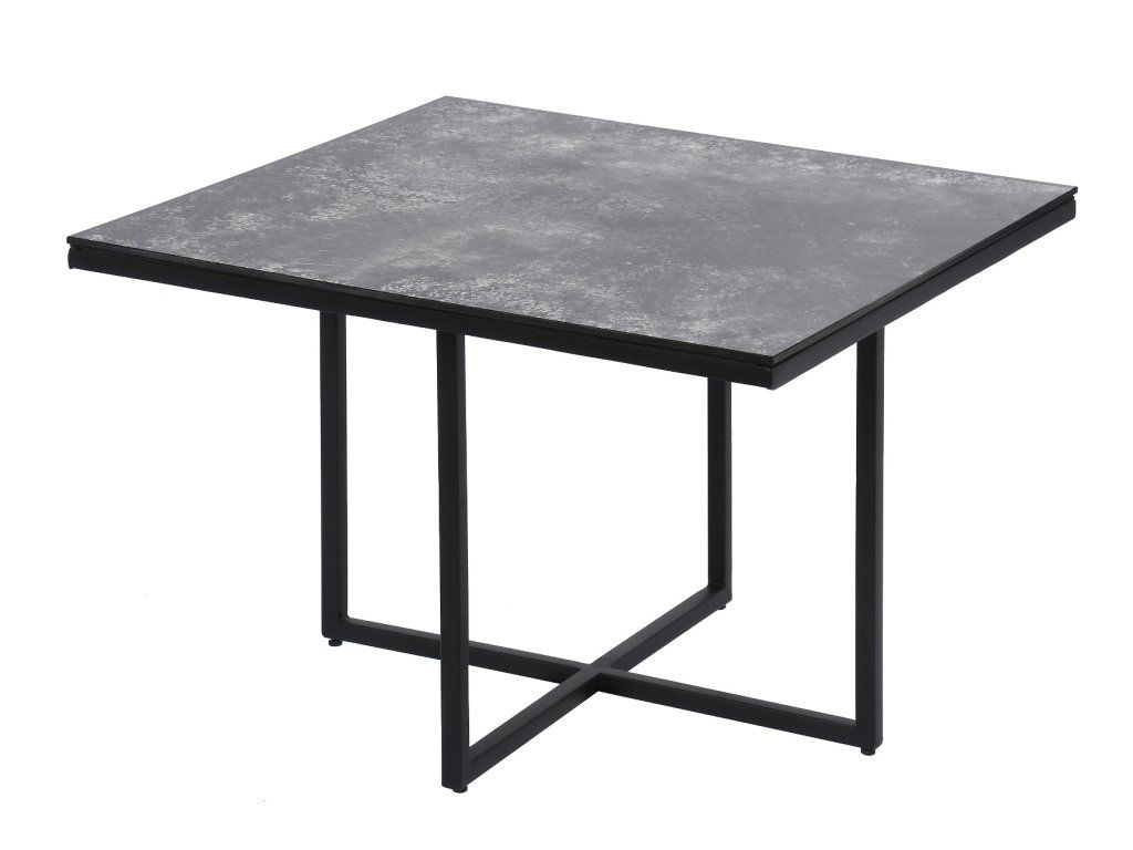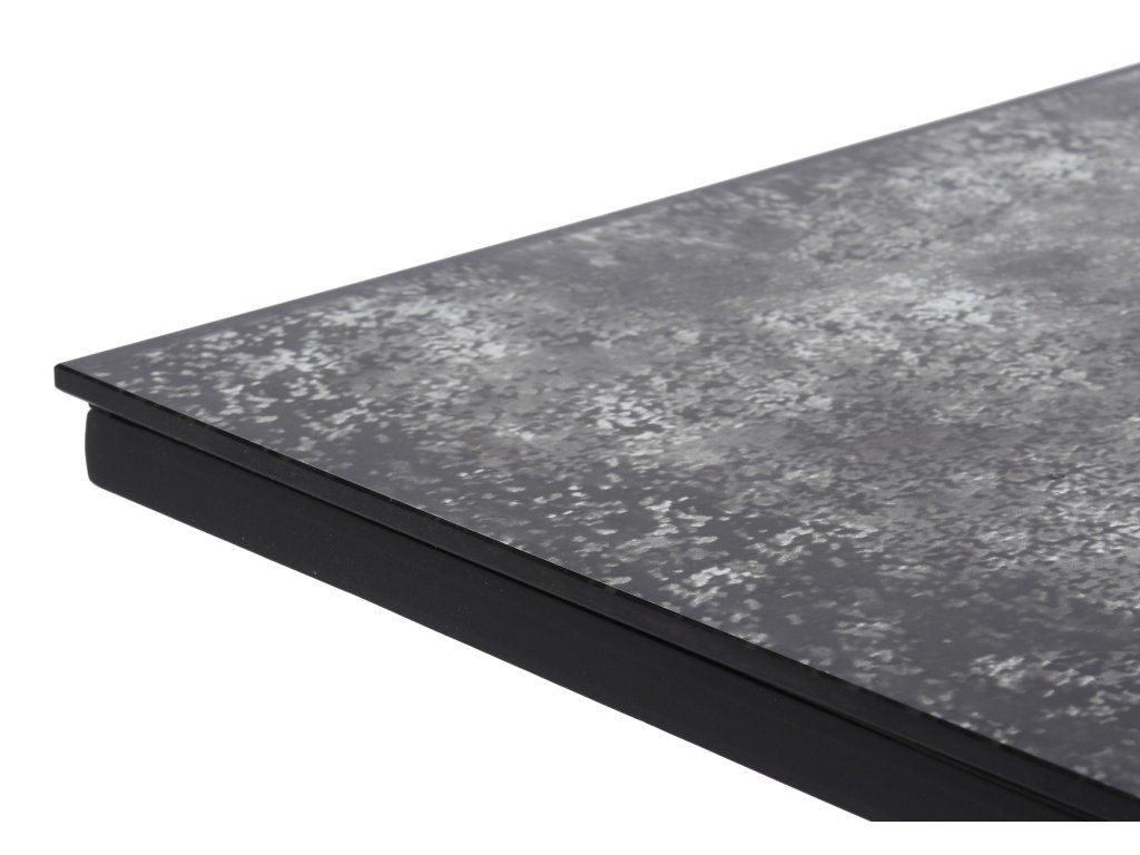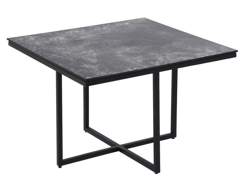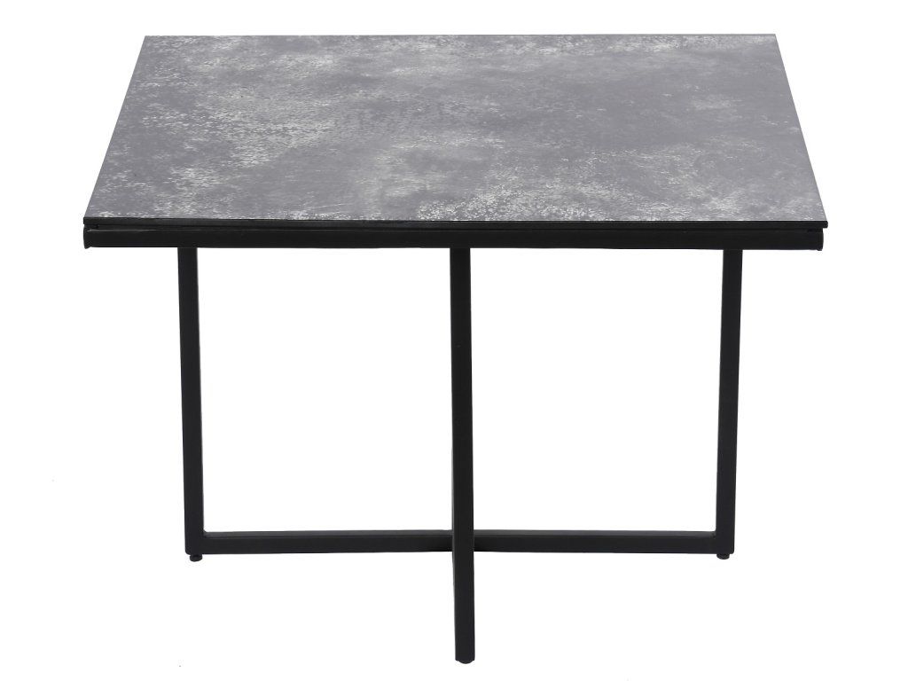 Elegantný konferenčný stolík 70x70x46 so sklenenou doskou, vzor kameňovo šedý, oceľový podstavec čierny, matný