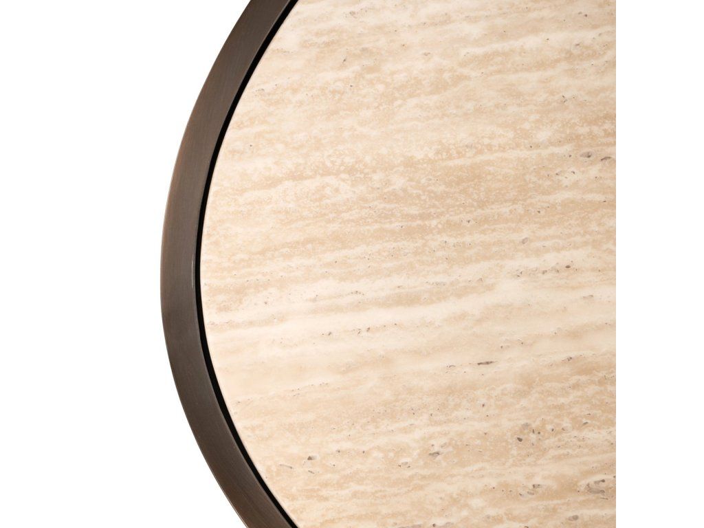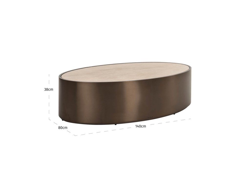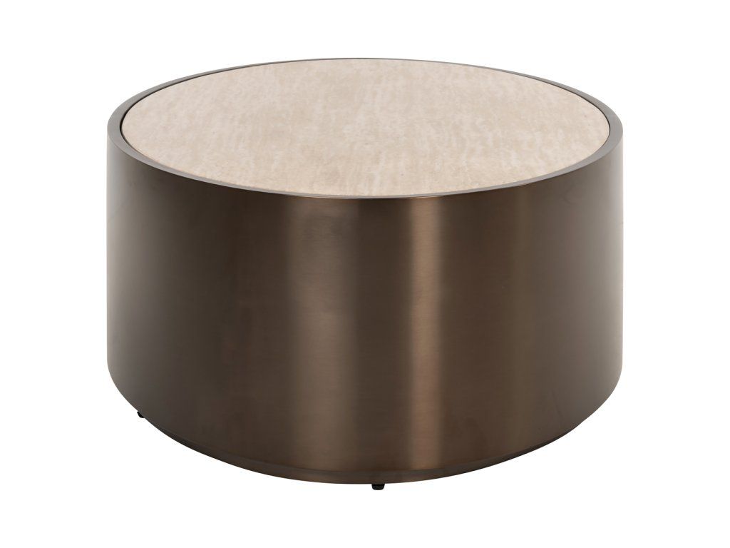 Konferenčný stolík Bonanza je elegantný okrúhly stolík s luxusnou doskou z imitácie mramoru a bronzovou podnožou z nehrdzavejúcej ocele. Rafinovaný povrch s mramorovým vzhľadom a teplá kovová podnož dodávajú tomuto stolíku elegantný vzhľad, ideálny do moderných alebo hotelových interiérov. Skutočný pútač pozornosti do každého obytného priestoru.Dodatočné parametre