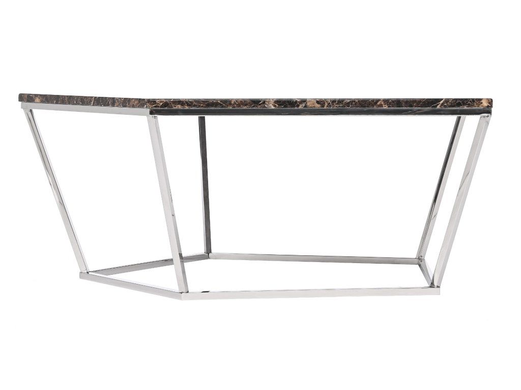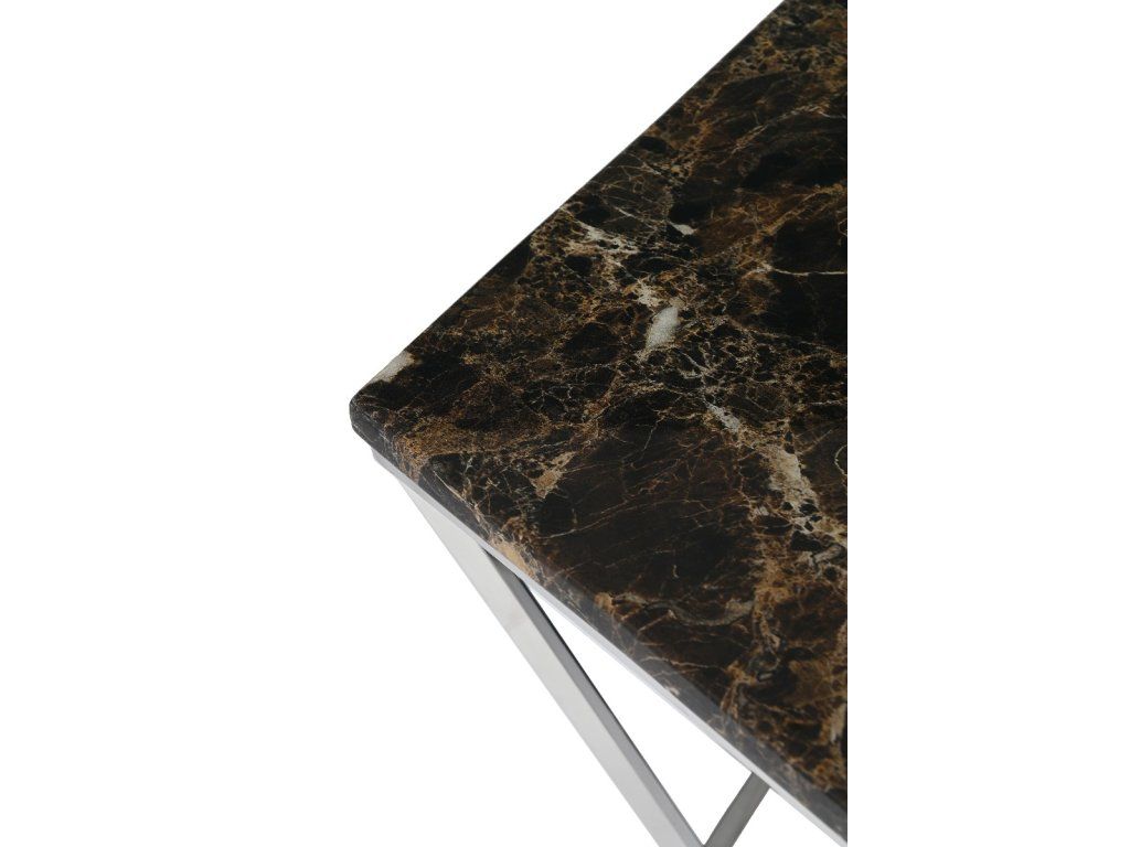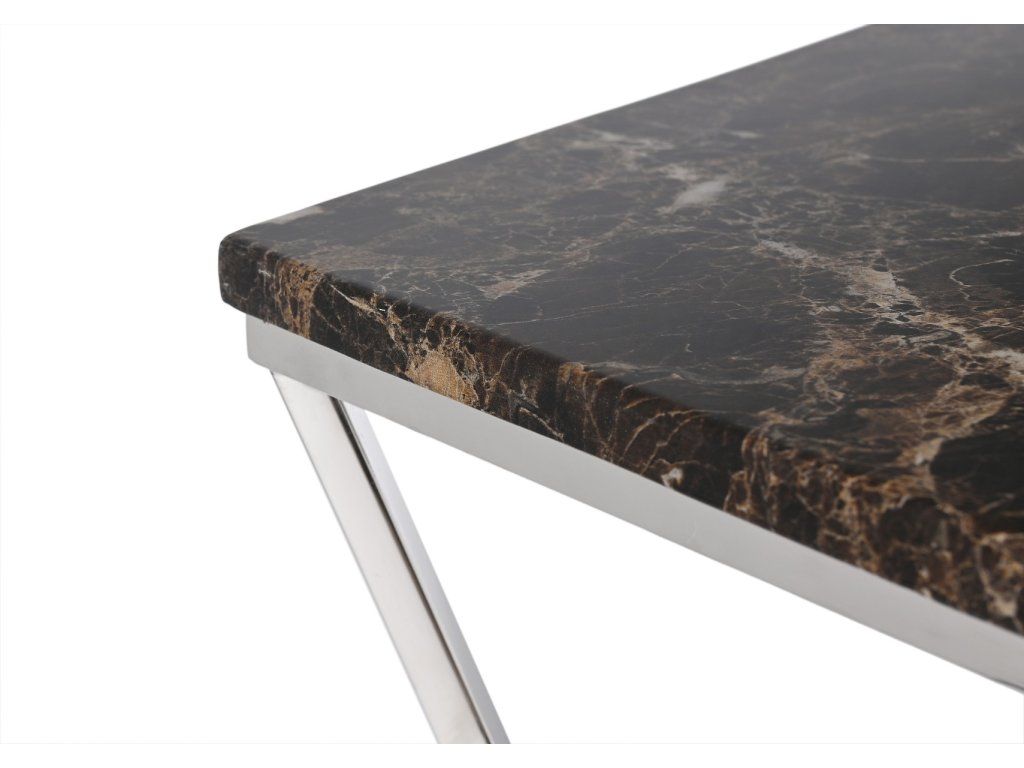 Konferenčný stolík Brooklyn 120x60x40, doska s hnedými dlaždicami s imitáciou mramoru, podstavec z nehrdzavejúcej ocele