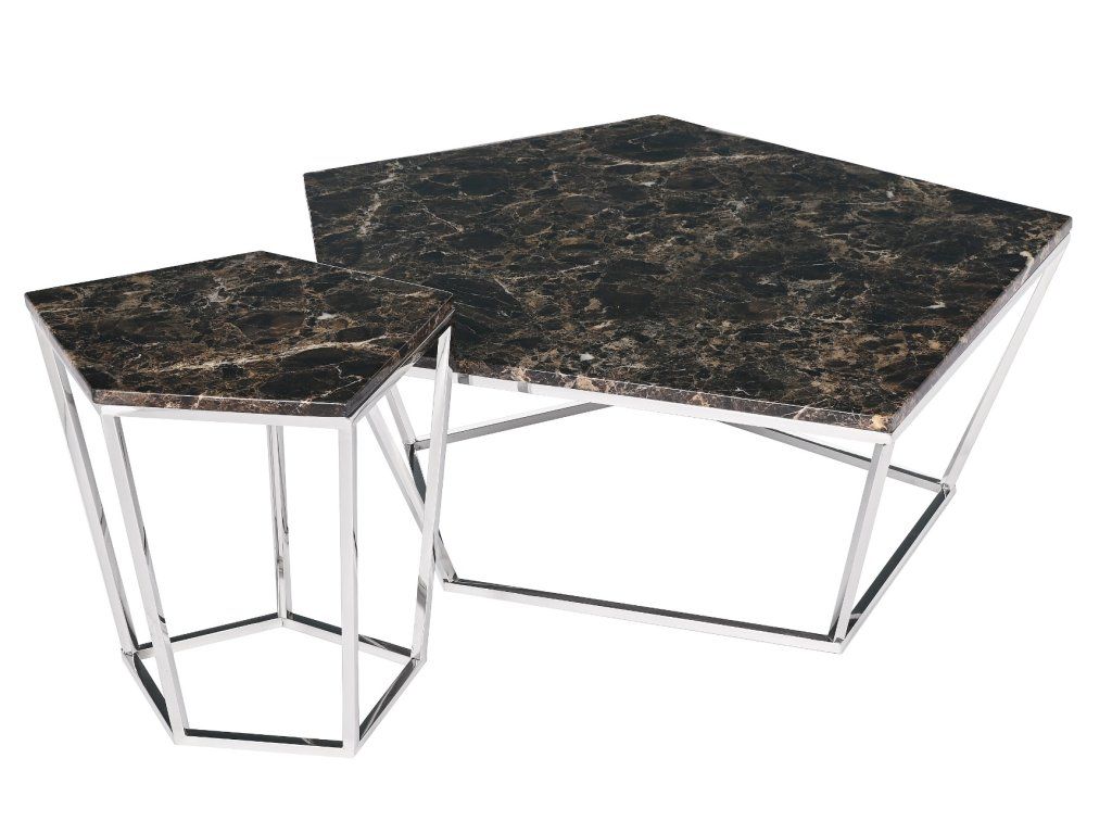 Konferenčný stolík Brooklyn je skutočne jedinečný kus nábytku s pohodlnou veľkosťou. Doska stola je vyrobená z kameniny s mramorovým efektom, takže je neuveriteľne praktická a odolná. Kovové nohy dodávajú stolu moderný nádych. Jedinečný geometrický tvar stolíka je skutočne pútavý. Tento stolík dokonale doplní interiéry v newyorskom, glamour, modernom alebo modernistickom štýle. Bude praktickým a elegantným doplnkom vášho obývacieho nábytku. Tento jedinečný kus nábytku krásne vynikne v každej miestnosti.Dodatočné parametre