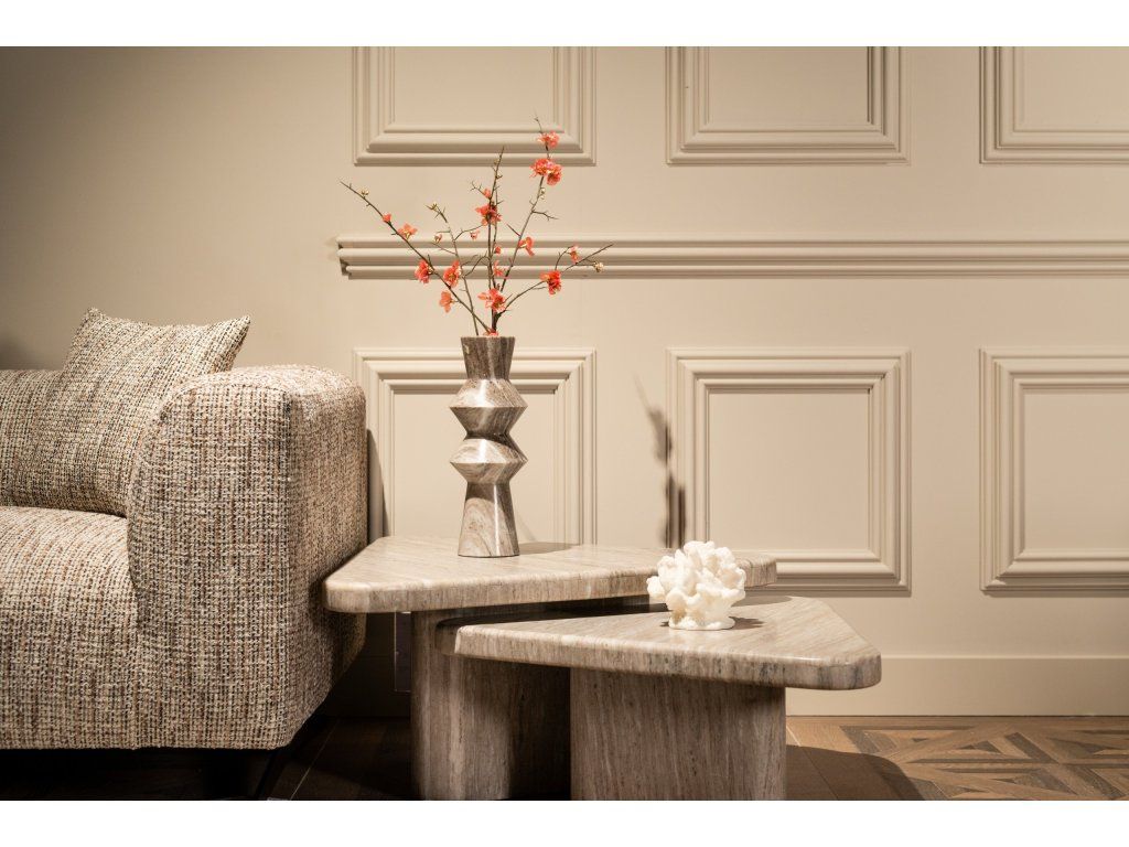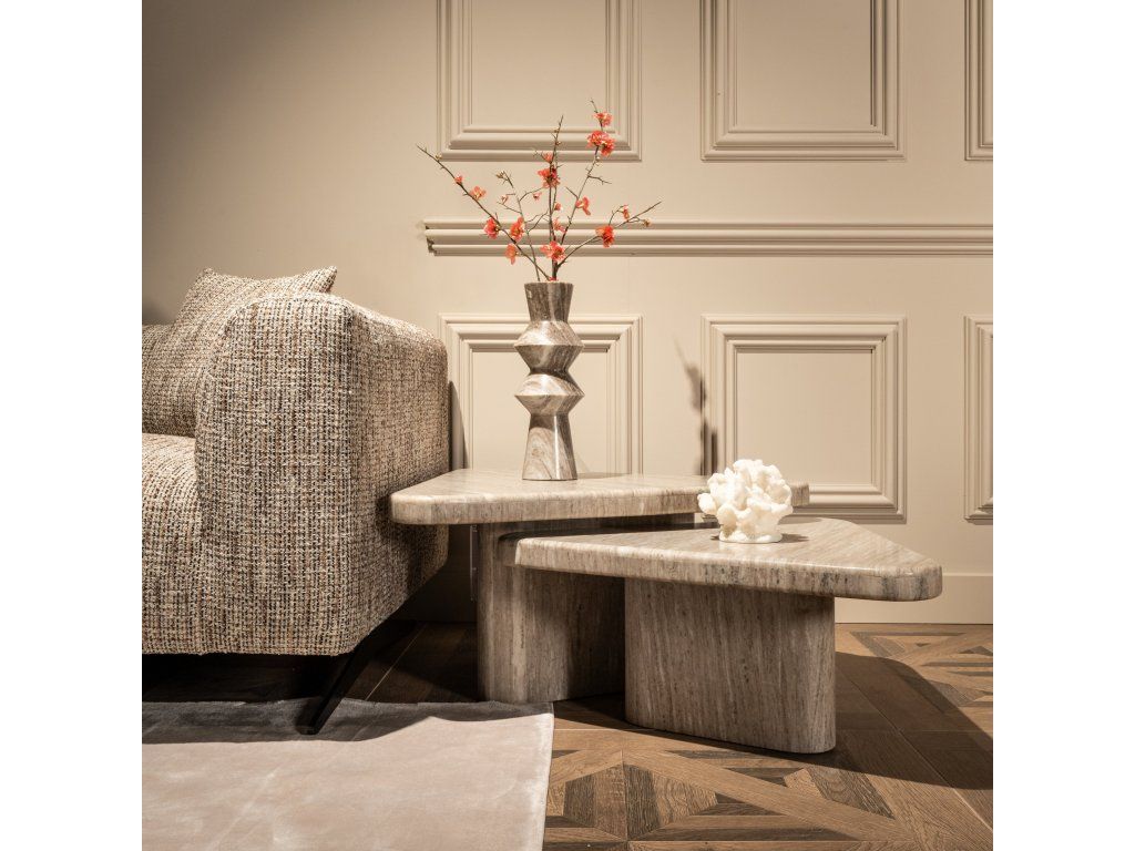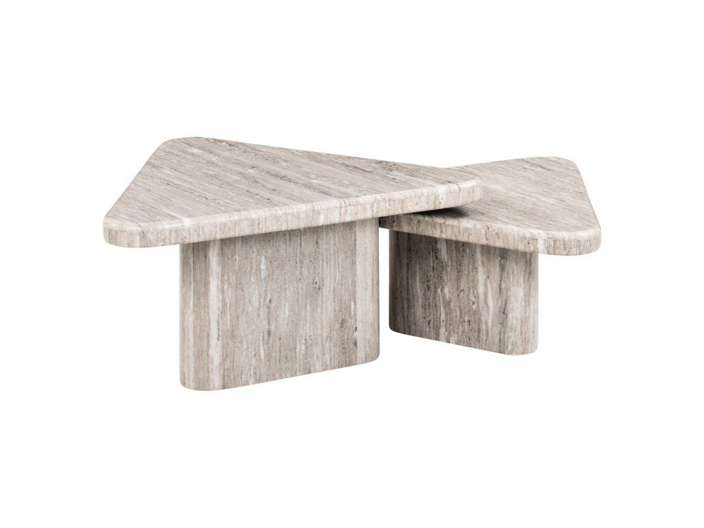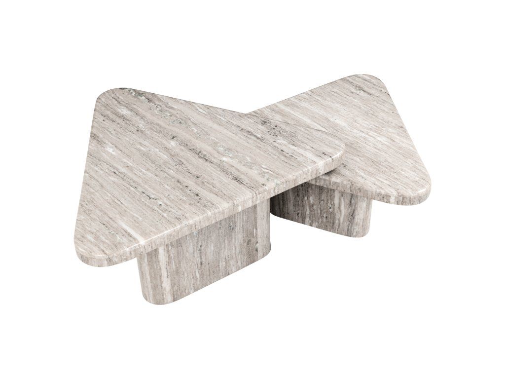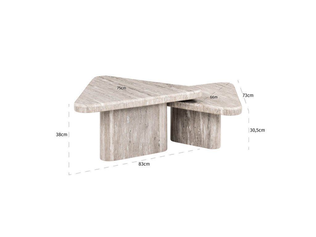 Dvojdielna súprava konferenčných stolíkov Dwayne je rafinovaným a moderným doplnkom každého interiéru, vyrobeným z vysoko kvalitného mramoru. Táto súprava sa skladá z dvoch stolíkov s jedinečným asymetrickým dizajnom, ktorý je štýlový aj funkčný zároveň. Prirodzená textúra a farebné variácie mramoru dodávajú stolíkom nádych luxusu a elegancie. Konferenčné stolíky Dwayne sú ideálne na použitie spoločne ako výrazný ústredný prvok v obývačke alebo samostatne pre flexibilné usporiadanie. Táto súprava ponúka ideálnu kombináciu odolnosti a estetiky, vhodnú do moderného interiéru.Dodatočné parametre
