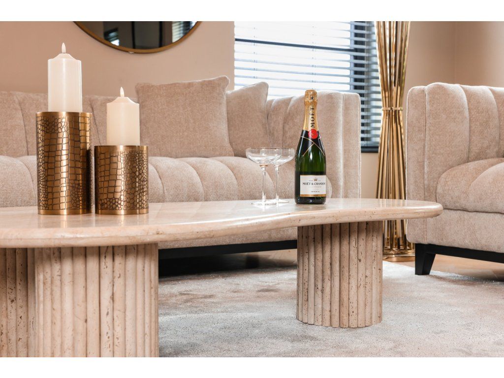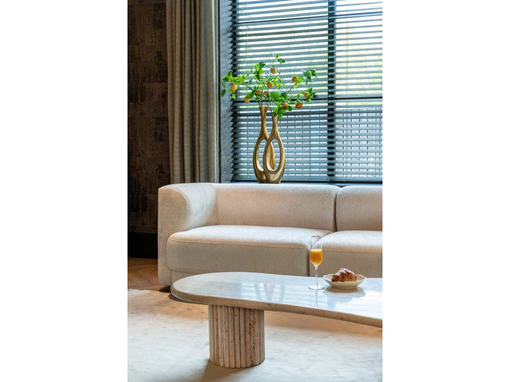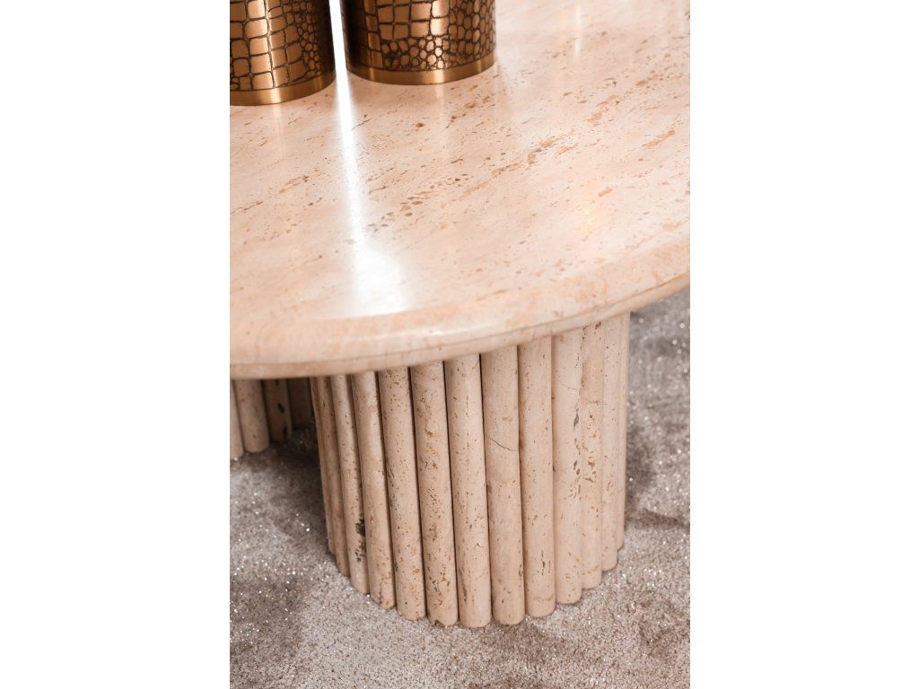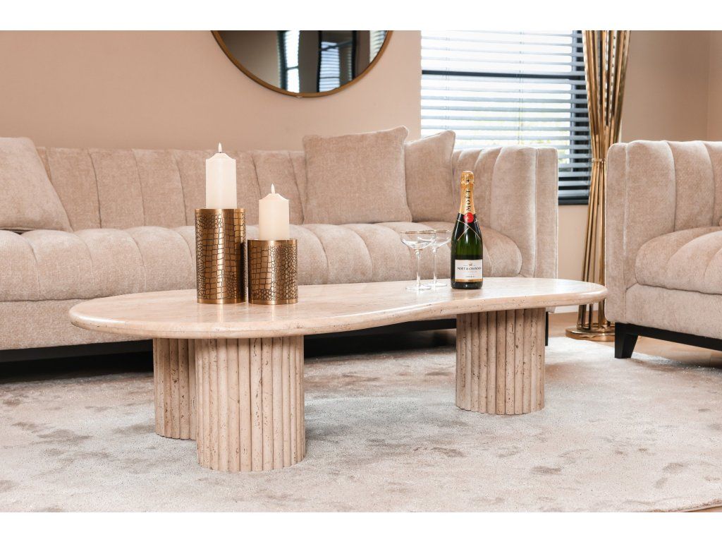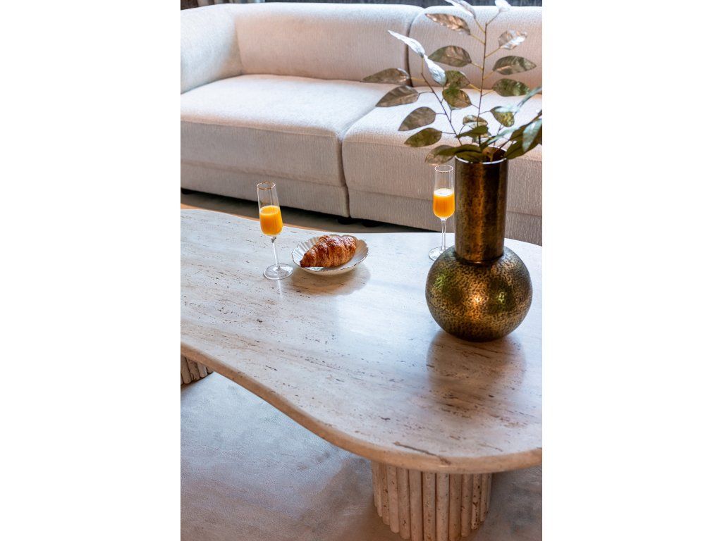 Konferenčný stolík La Cantera so svojím organickým tvarom a jednotným travertínovým vzhľadom dodá každej obývačke nádych elegancie. Tento konferenčný stolík je vyrobený z vysoko kvalitného travertínu, čo mu dodáva luxusný a nadčasový vzhľad. Organický tvar stolíka vytvára harmonický a prirodzený efekt, ktorý umocňuje celkovú estetiku miestnosti. Či už sa používa ako ústredný prvok alebo na vystavenie dekoratívnych predmetov, konferenčný stolík La Cantera púta pozornosť svojím ohromujúcim jednotným travertínovým vzhľadom. Vytvorte si sofistikovanú a štýlovú atmosféru vo svojom obývacom priestore s krásnym konferenčným stolíkom La Cantera vyrobeným z vysoko kvalitného travertínu.Dodatočné parametre