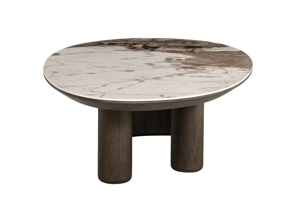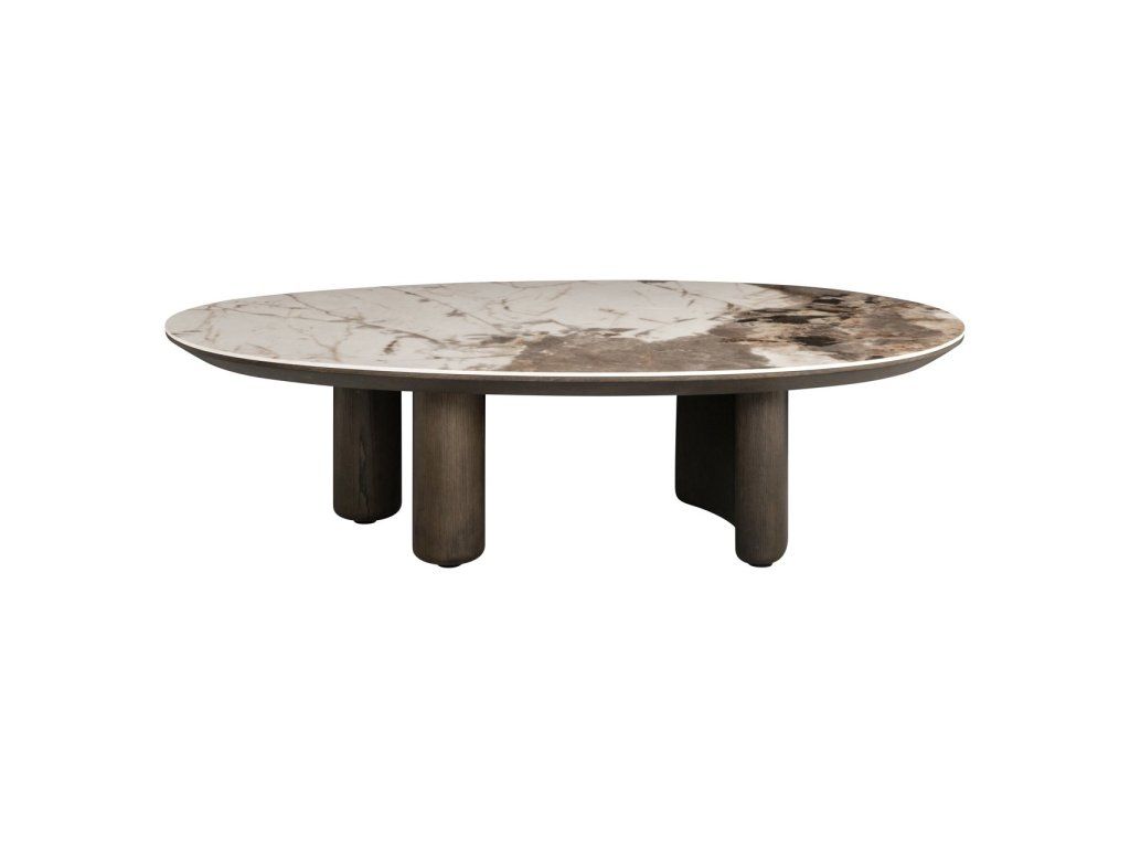 Konferenčný stolík Langford má základňu z tmavej dubovej dyhy a lesklú keramickú dosku v sýtych hnedých tónoch. Rafinovaný a nadčasový dizajn s luxusným kontrastom.Dodatočné parametre