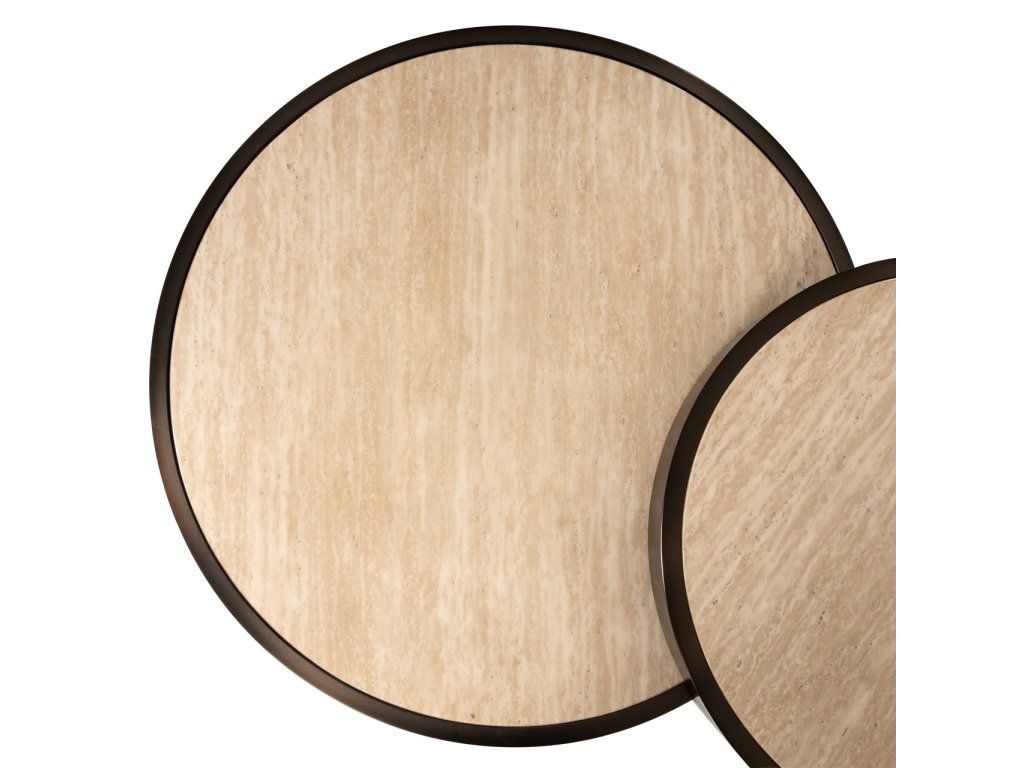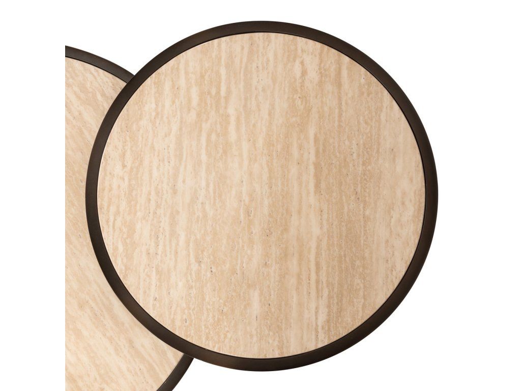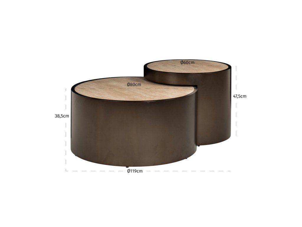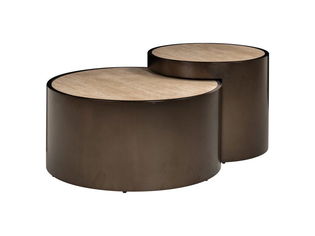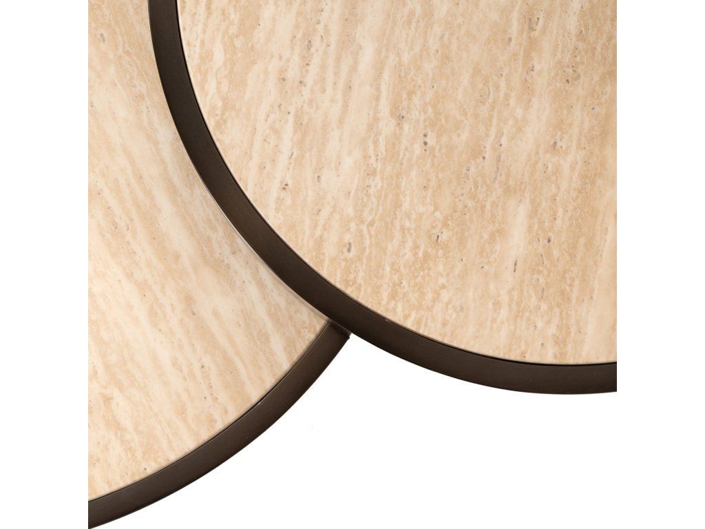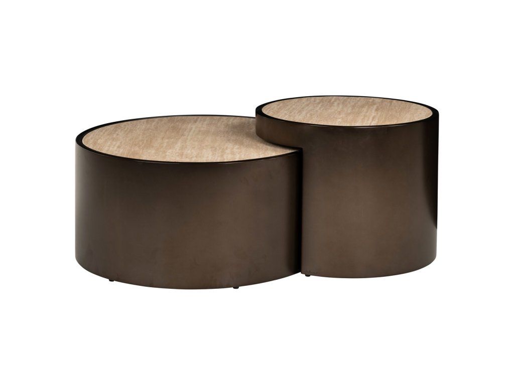 Súprava konferenčných stolíkov Ronson obsahuje dva štýlové stolíky s luxusnou doskou z imitácie travertínu a rámami z nehrdzavejúcej ocele bronzovej farby. Táto súprava kombinuje prírodnú eleganciu s moderným povrchom a ponúka funkčnosť aj sofistikovanosť. Ideálna ako duo v obývacej izbe alebo samostatne navrhnutá pre hravý efekt.Dodatočné parametre