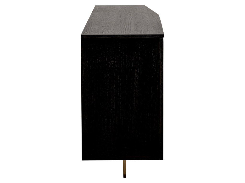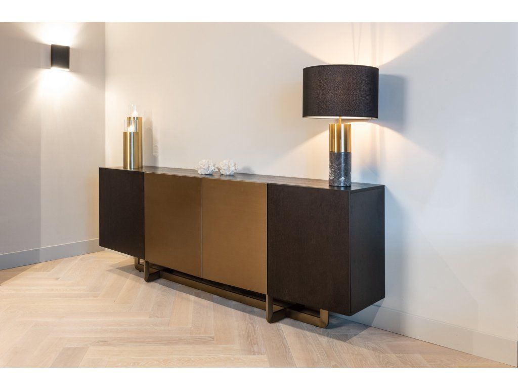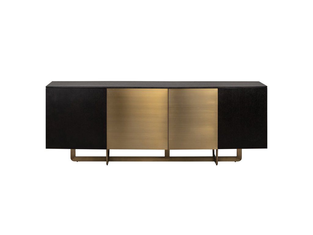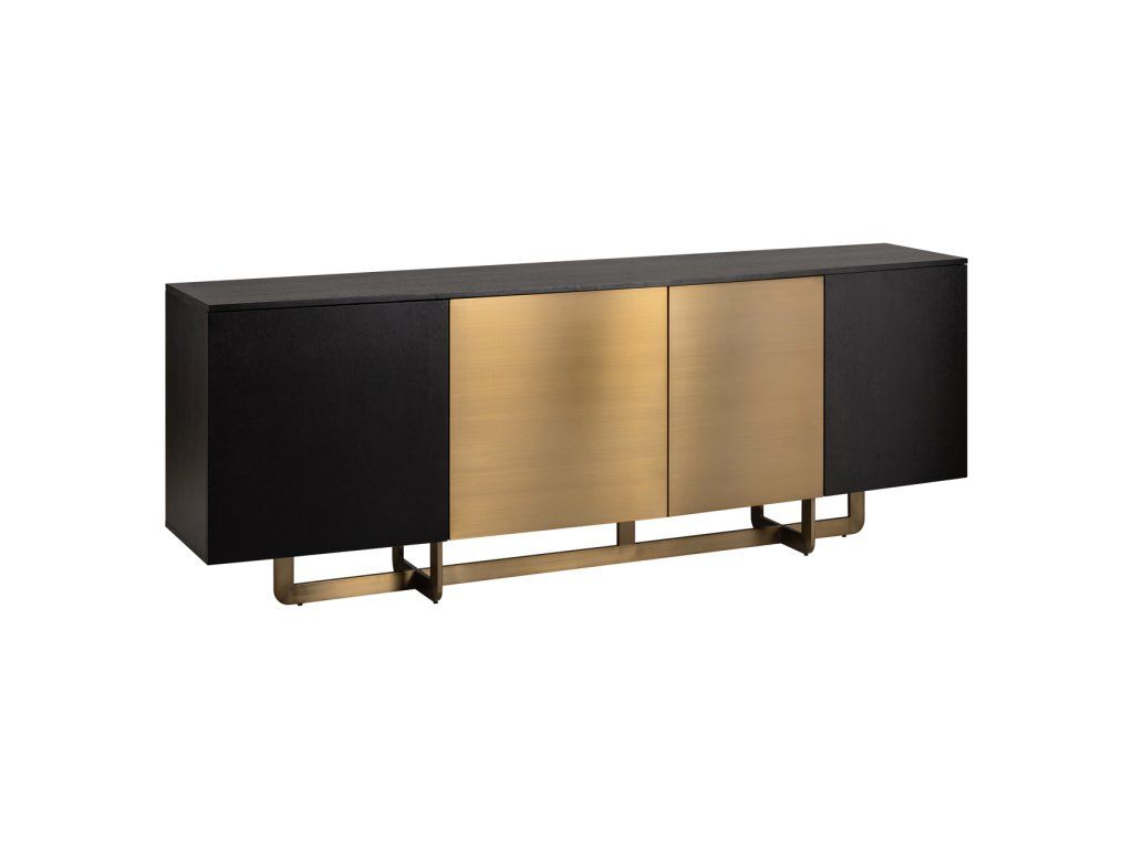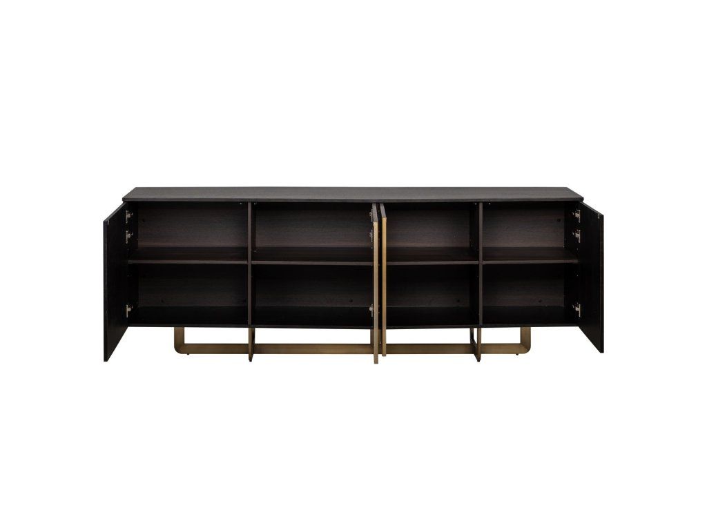 Krásna príborník Dax má moderný dizajn vyrobený z dubovej dyhy vo farbe „charcoal“ black, pričom dva zo štyroch dvierok sú povrchovo upravené v brúsenom zlate. Okrem elegancie ponúka aj veľké množstvo úložného priestoru vďaka poličke vo vnútri príborníka. Dax je doplnený o základňu v brúsenom zlate.Dodatočné parametre