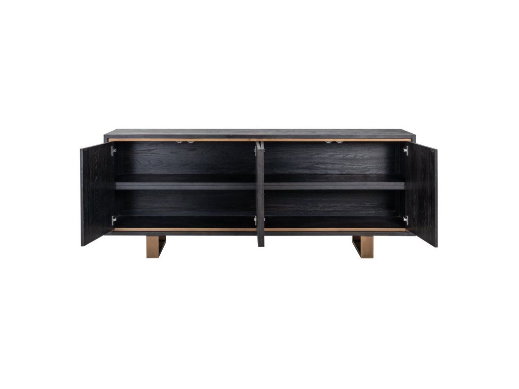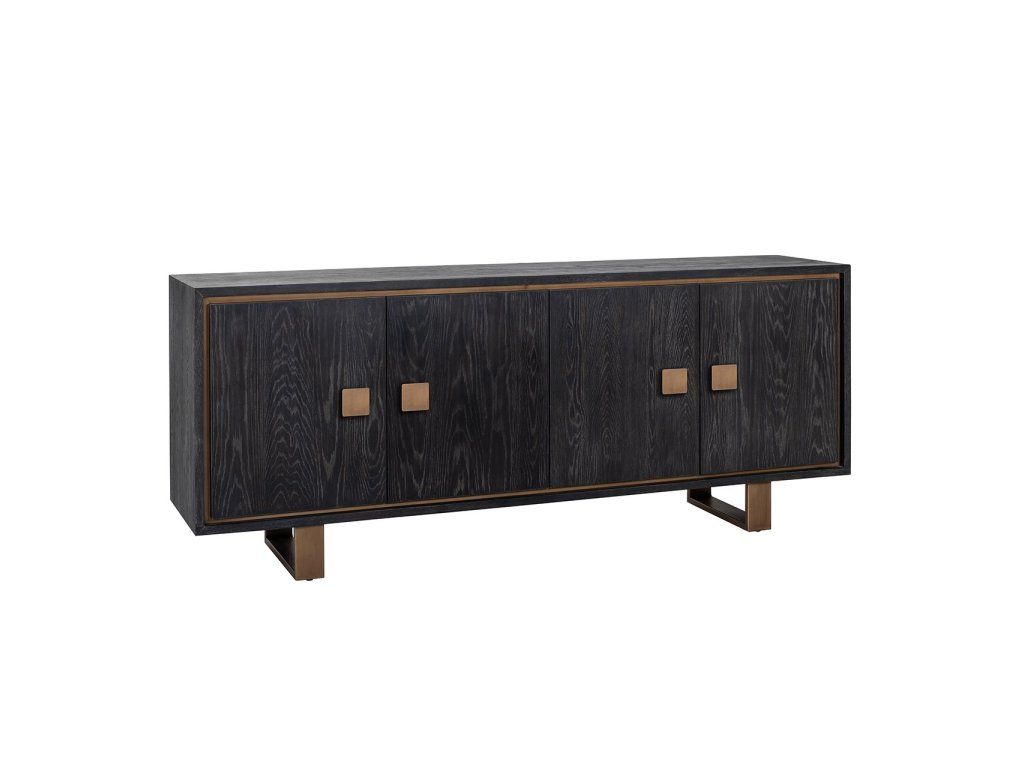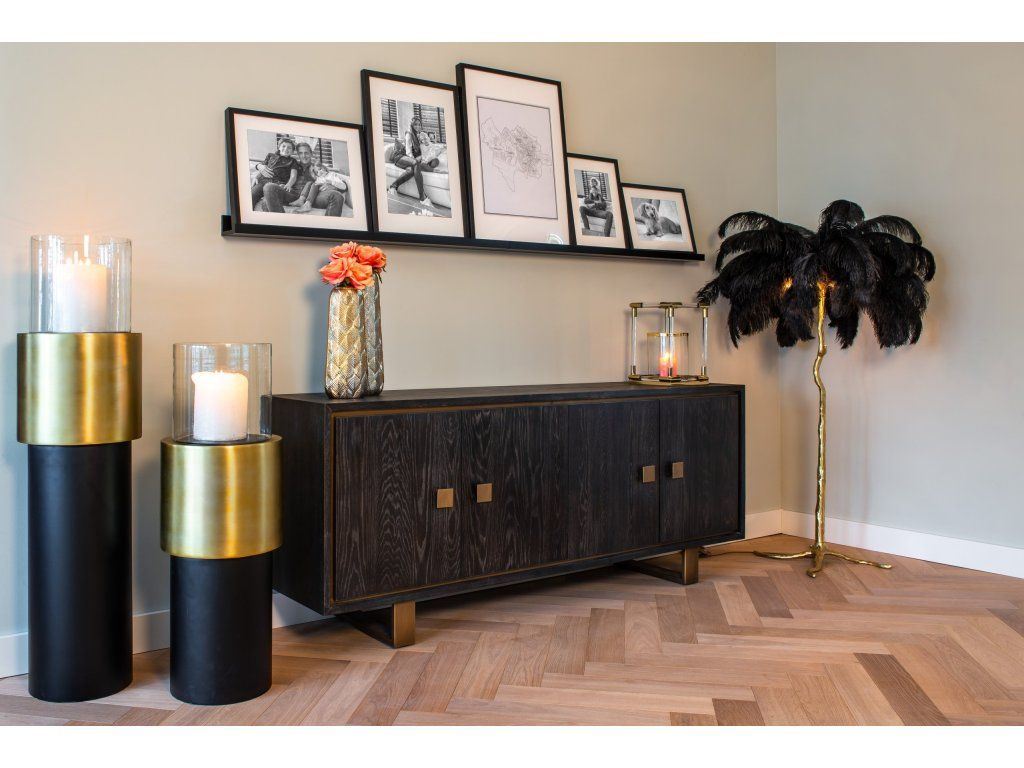 Rozžiarte svoj interiér s touto modernou komodou Hunter. Špeciálna skrinka z čiernej dubovej dyhy s matným zlatom a 4 dvierkami. Ideálna na vaše najkrajšie doplnky a na uloženie iných vecí! Kombinujte s ďalšími predmetmi z našej kolekcie Hunter.Dodatočné parametre