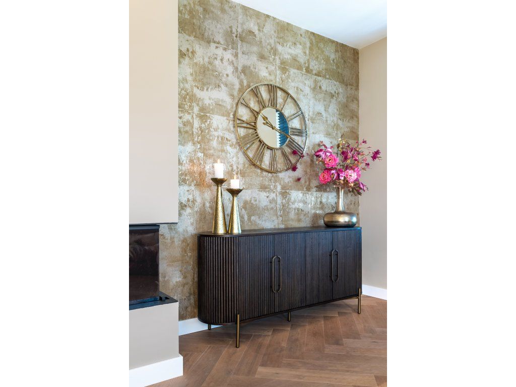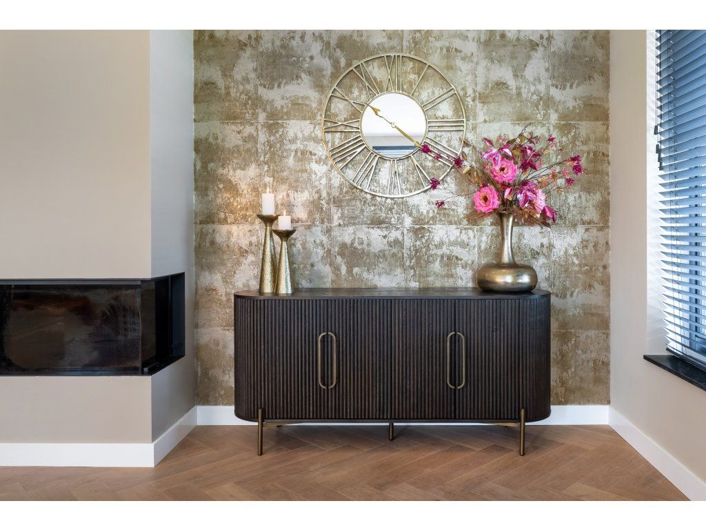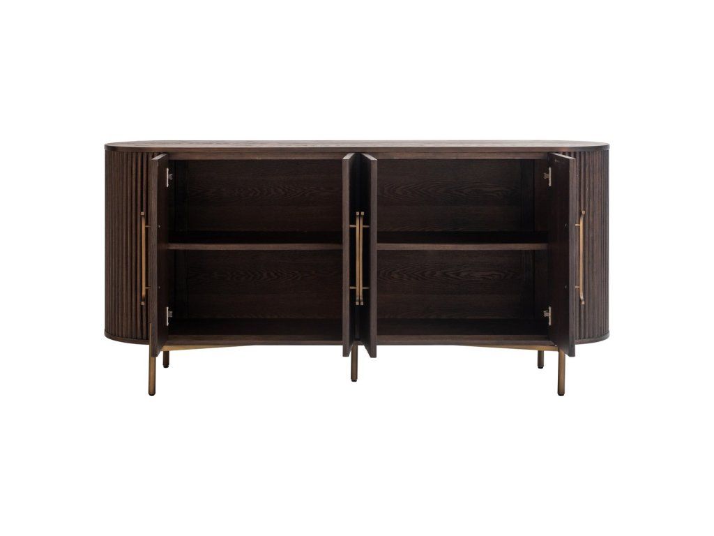 Príborník Luxor so štyrmi dvierkami prináša štýl aj funkčnosť. Vyrobený z vysoko kvalitného dubového dreva a ozdobený elegantnými brúsenými zlatými akcentmi, tento kus nábytku dodá sofistikovanosť každému priestoru.Dodatočné parametre