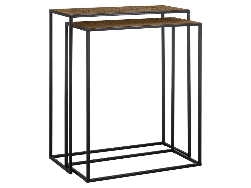 Toto je krásna sada konzolových stolíkov Bristol, perfektný kus nábytku, ktorý sa hodí do akéhokoľvek štýlu. Je to úložný priestor v štýlovom, industriálnom štýle vyrobený z kovu s pevnými a odolnými železnými nohami. Nehľadajte ďalej, táto sada konzolových stolíkov dotvorí váš interiér!Dodatočné parametre